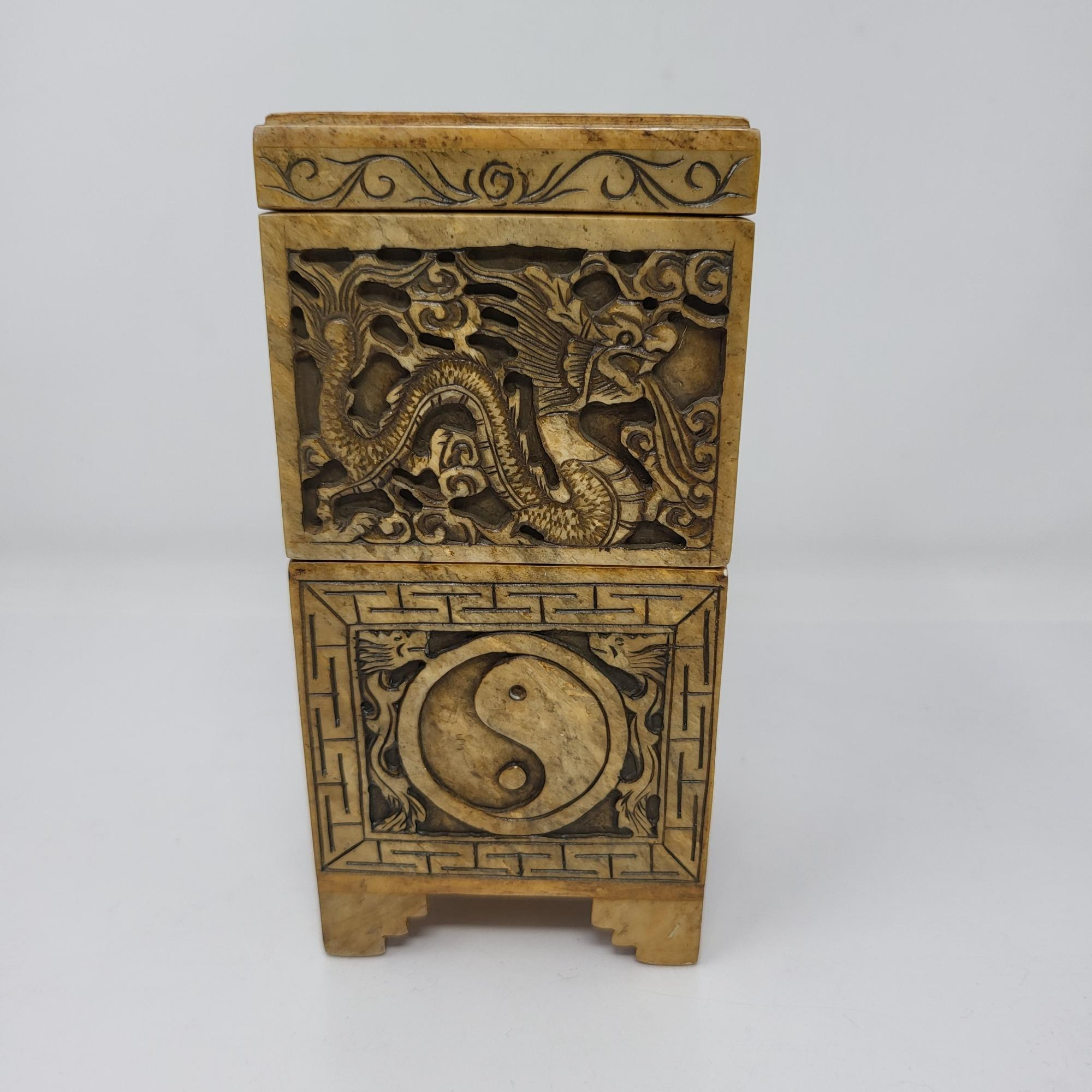 Lot # 135 - Two Piece Yin Yang/Dragon Carved Stone Relief Hinged Box