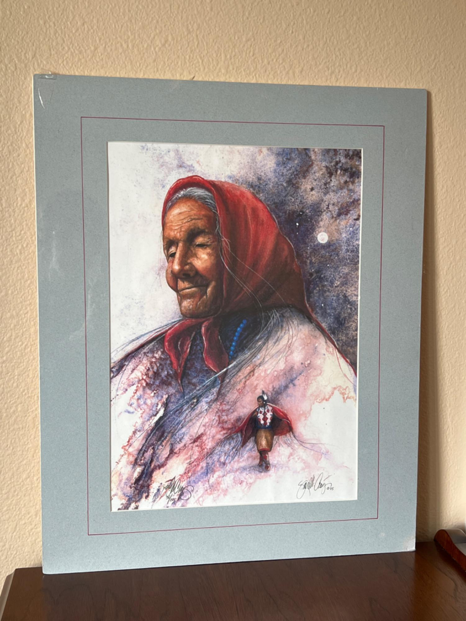 Signed by artist twice limited edition print of old woman reflecting on her youth. #38 or 150.