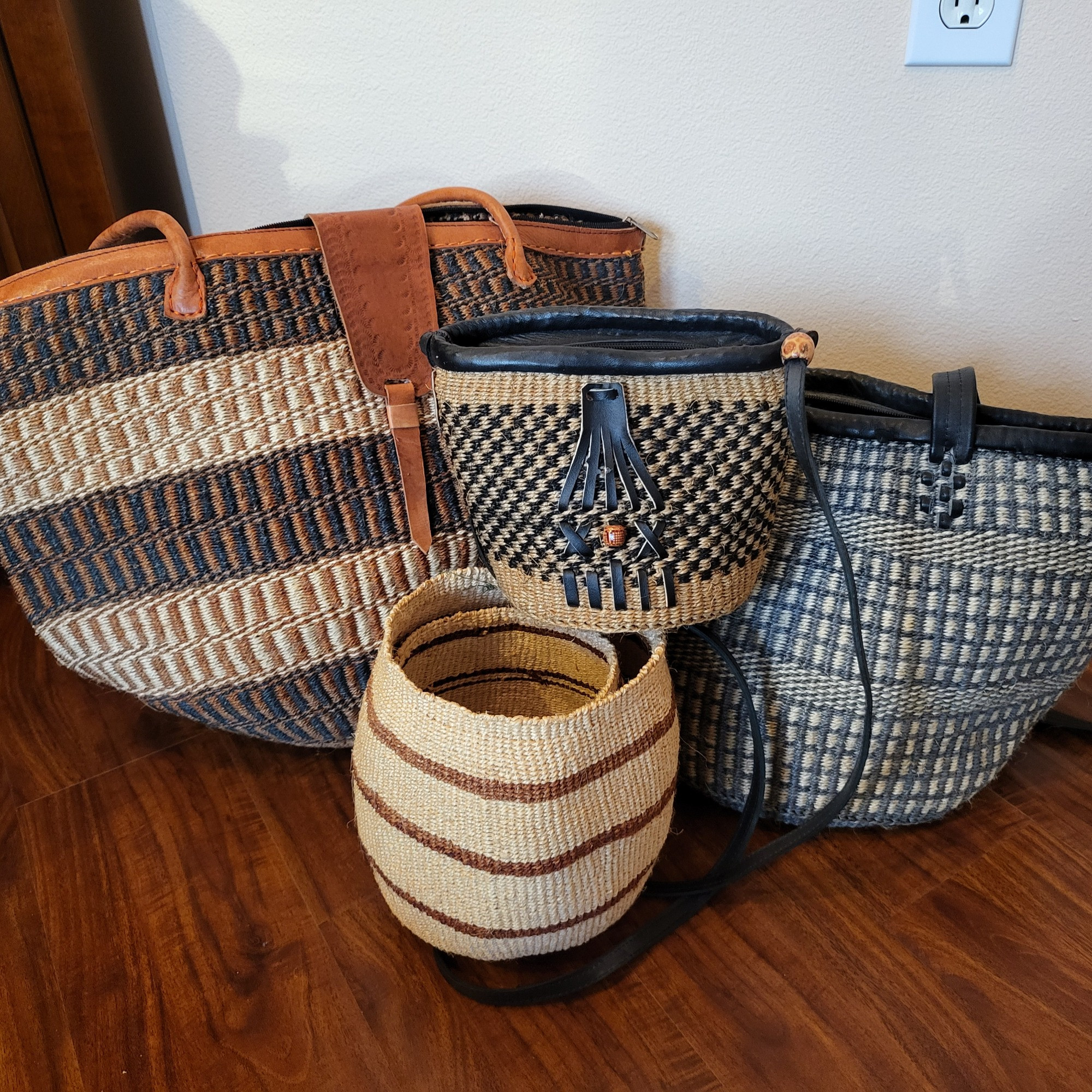 Collection of unique, hand woven baskets & handbags. Made by Kenyan women and especially gifted to owners: