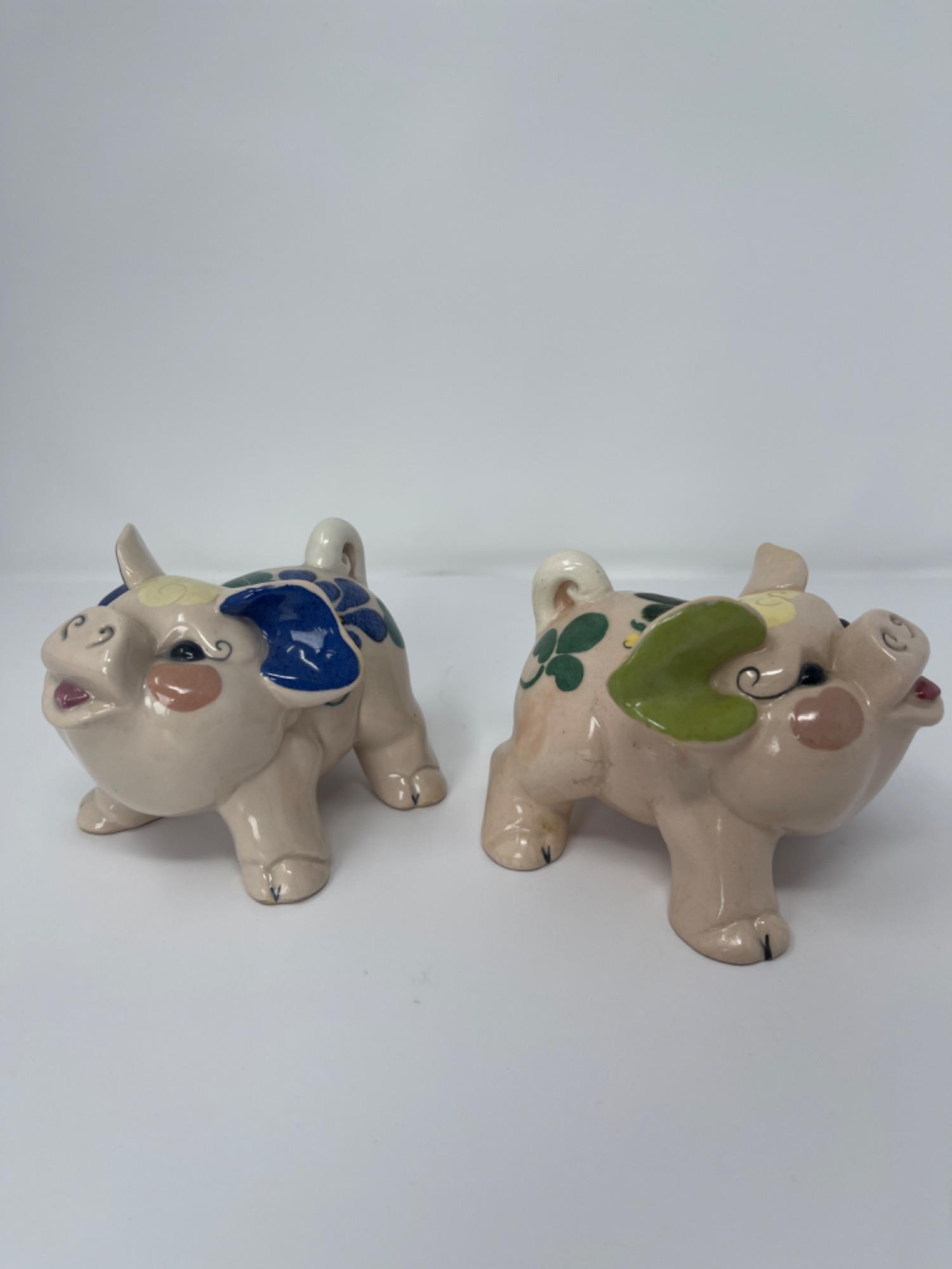 Lot # 13 - Vintage Kay Finch Pig Figurines-Hand Painted Pink Blue Mauve