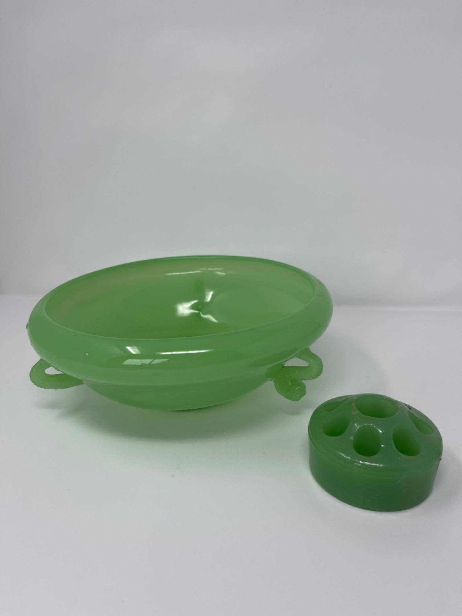 Lot # 17 - Jadeite Glass Bowl with Matching Flower Frog - Mid-Century Collectible