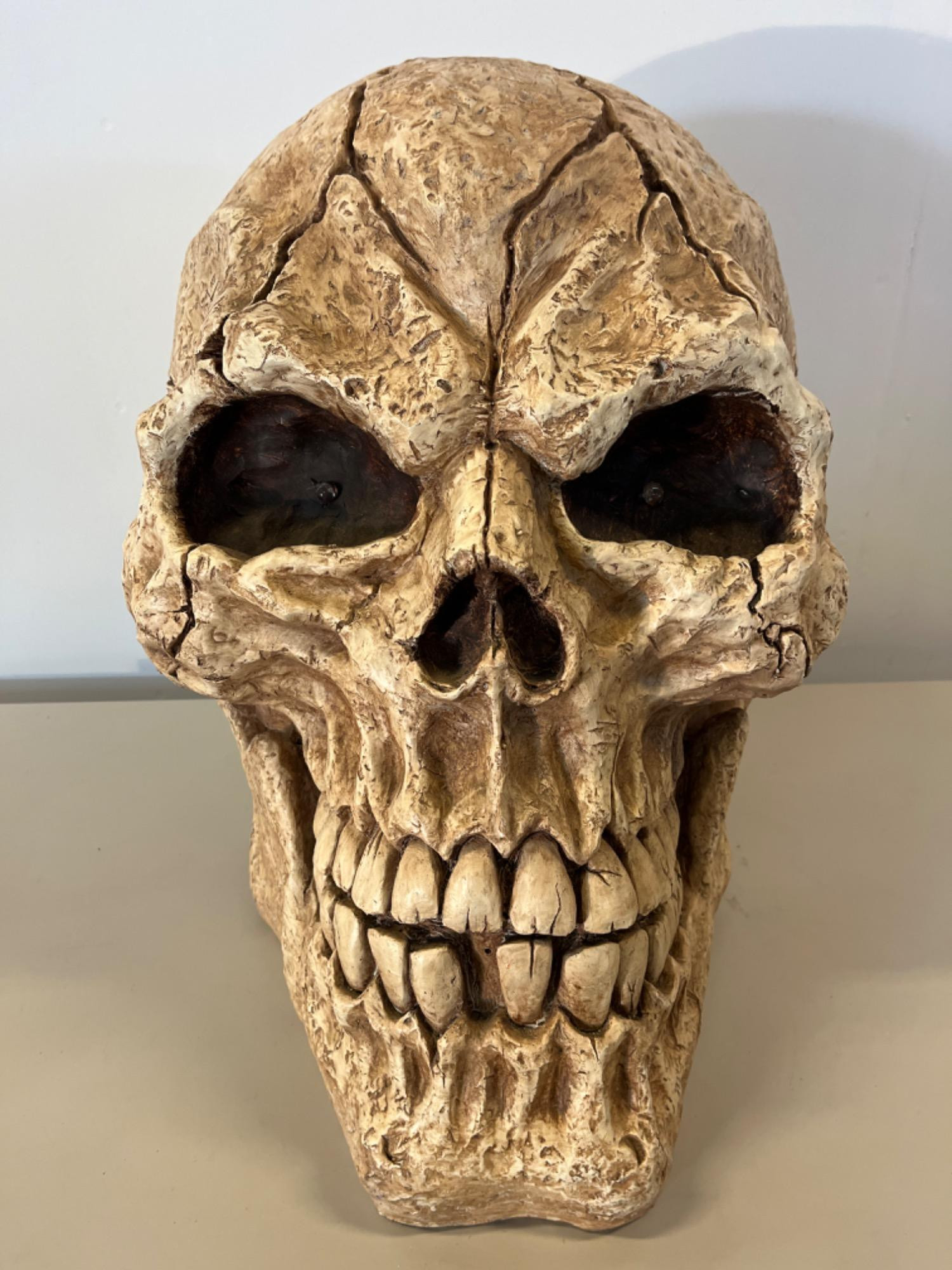22” Heavy Plastic Skull This skull’s eyes are supposed to light up and it is supposed to talk…neither are working