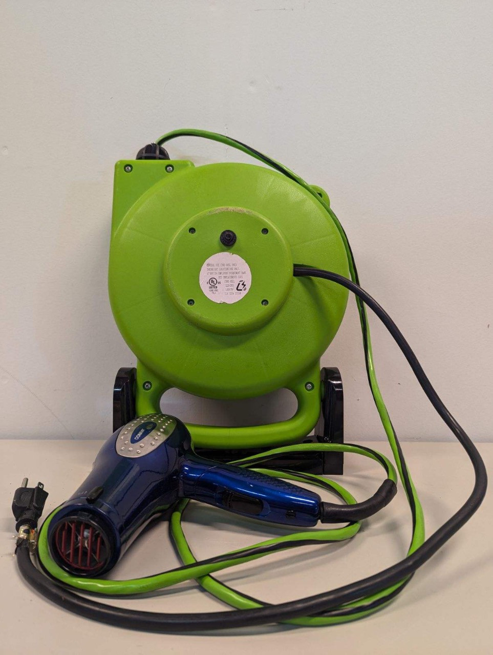 Lot # 154 - Heavy Duty 45’ Retractable Extension Cord Reel w/ Hair Dryer