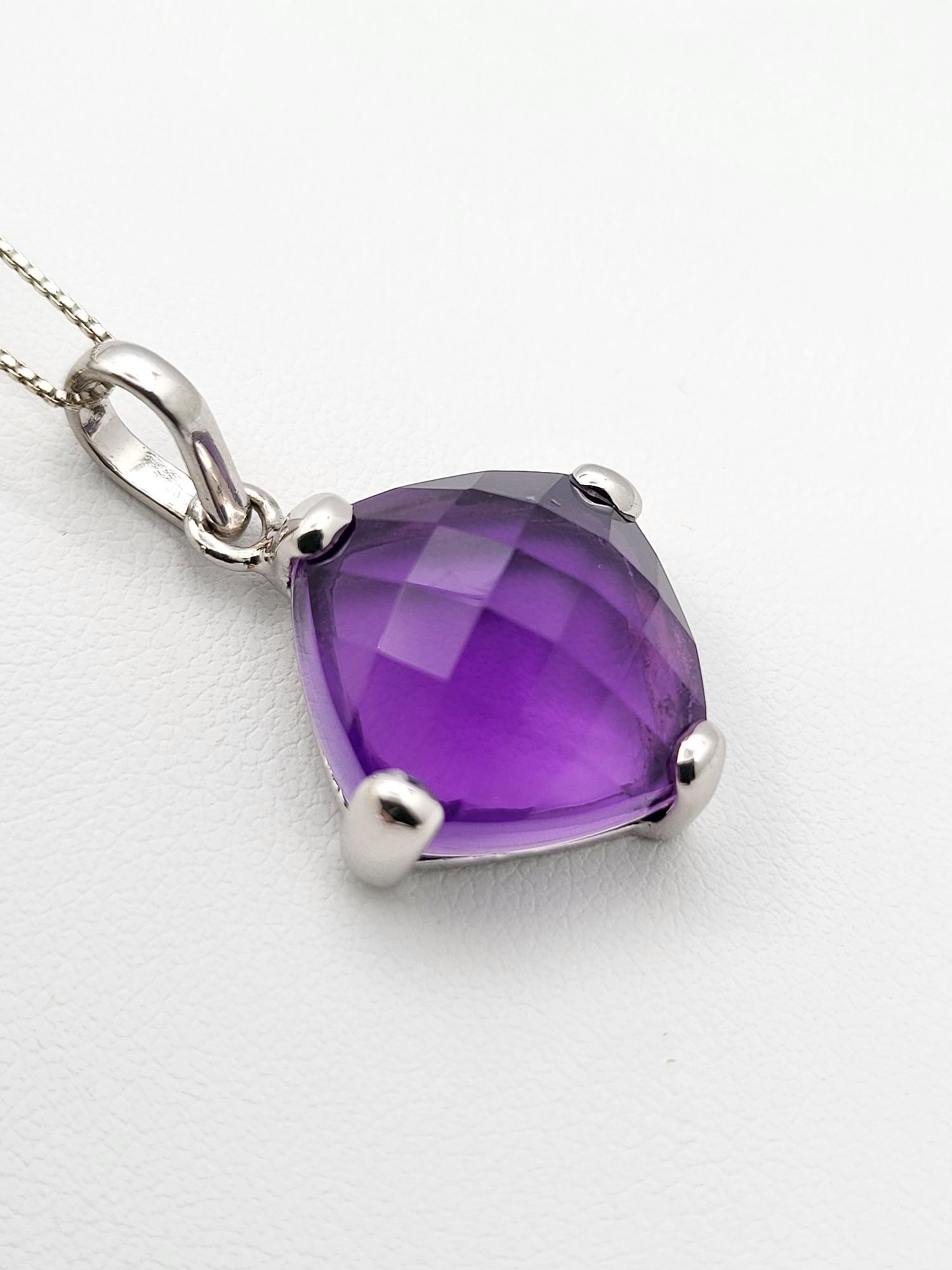 Checkered cushion cut Amethyst 925 pendant, .5" x .5", on a 17" 925 chain. Total weight 6.3 grams.