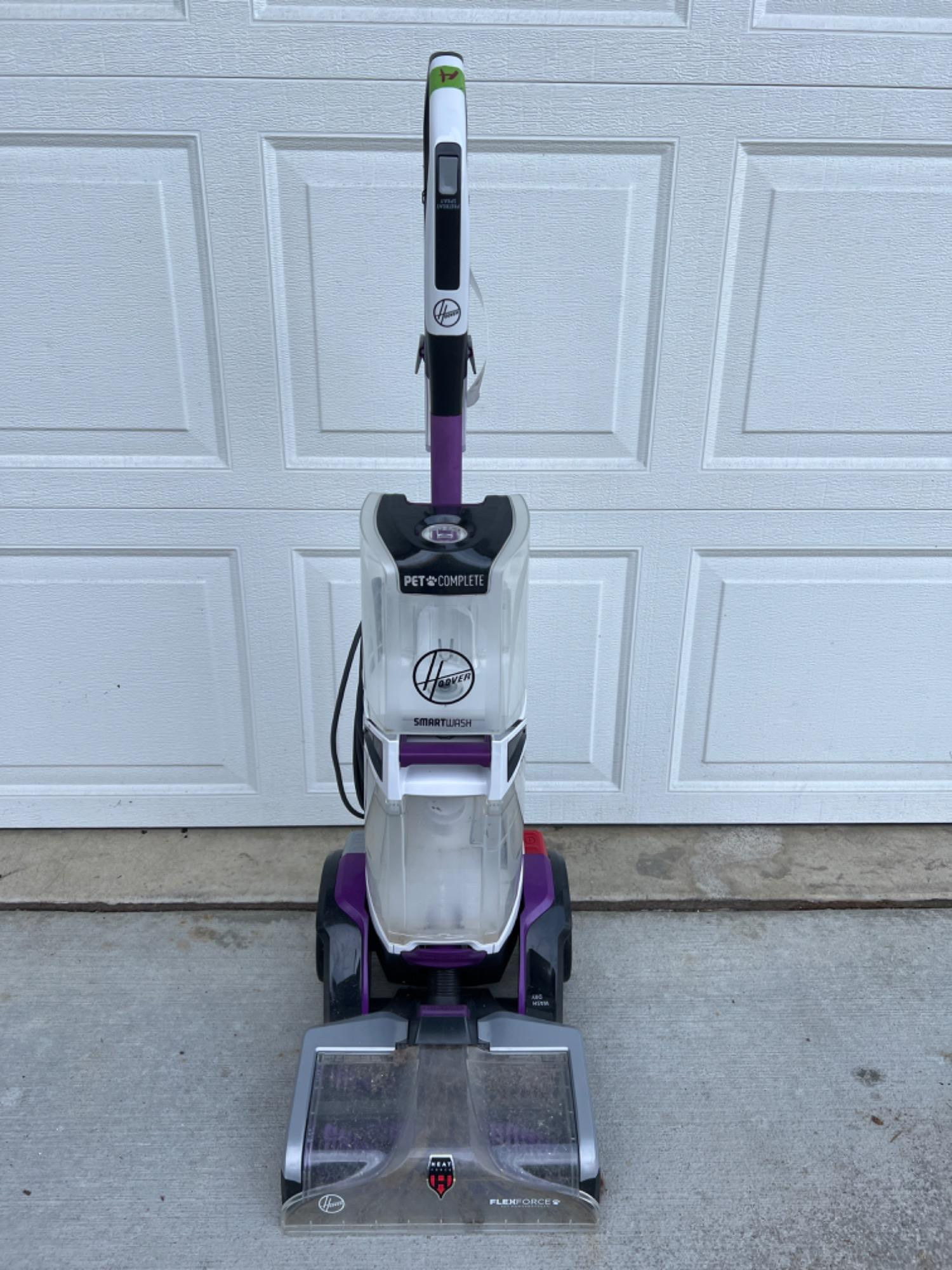 SmartWash PET Complete Automatic Carpet Cleaner by Hoover with hose attachment for stairs and other hard to reach areas. Includes a few bottles of Hoover cleaner.