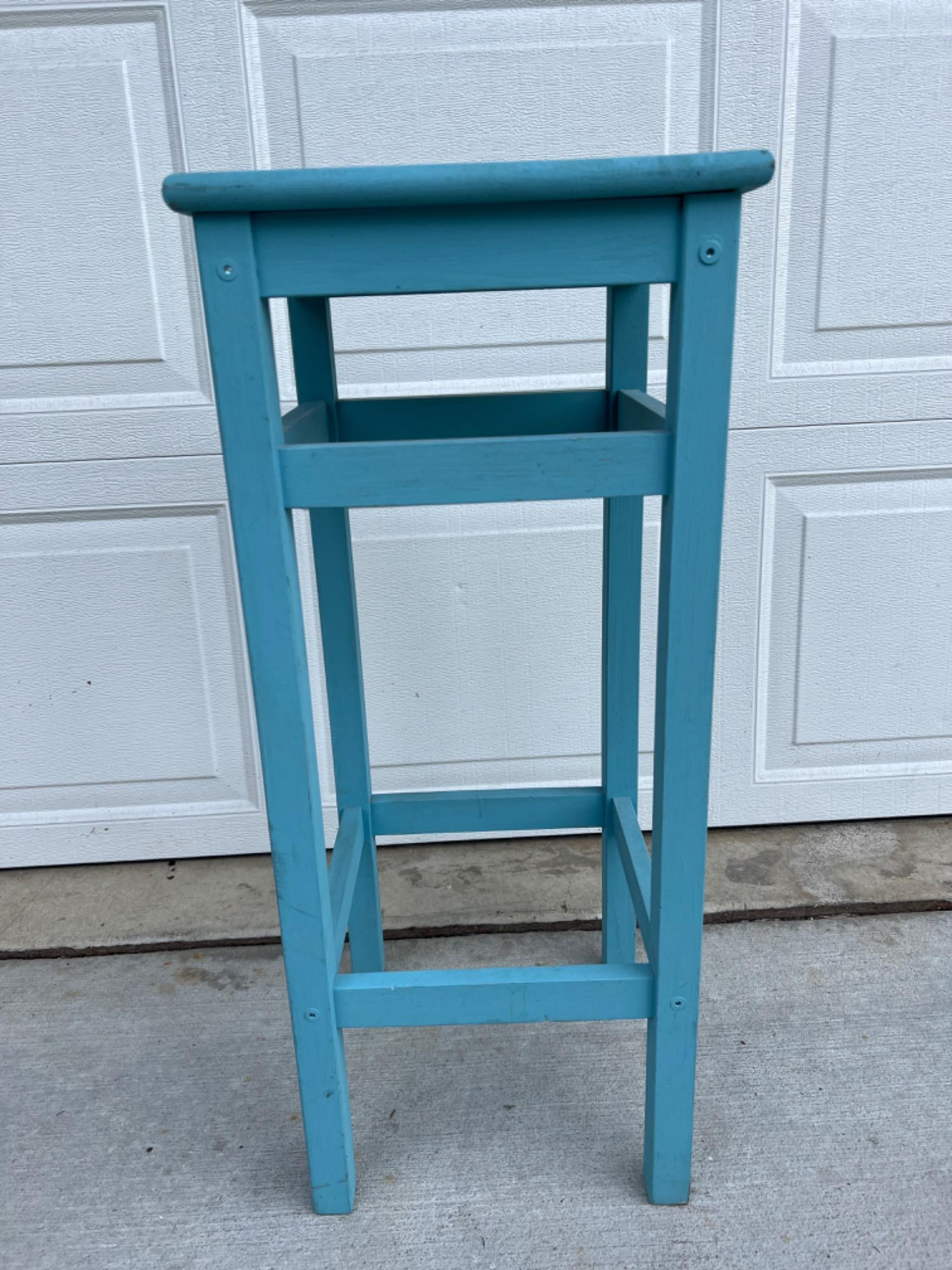 30.5" tall upcycled plant or lamp stand painted ocean blue.