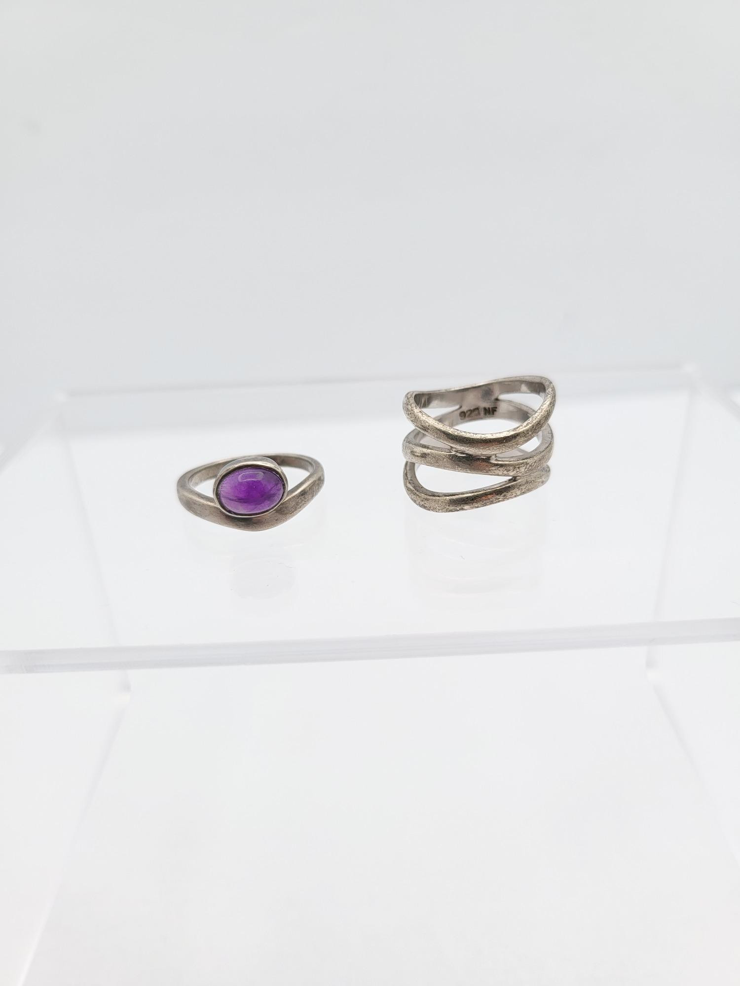 Amethyst ring size 6. Wavy ring size 6.5. Total weight 9.7 grams.