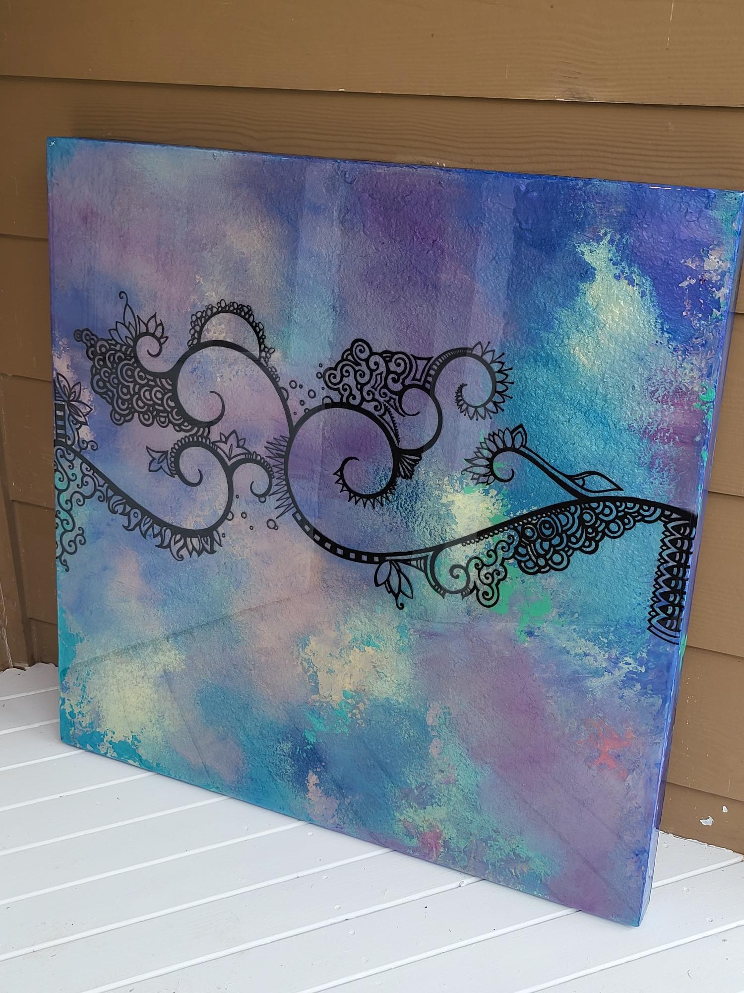 Genuinely unique stenciled and abstract painting on wood with enamel or acrylic coating by Jennifer Hatters.