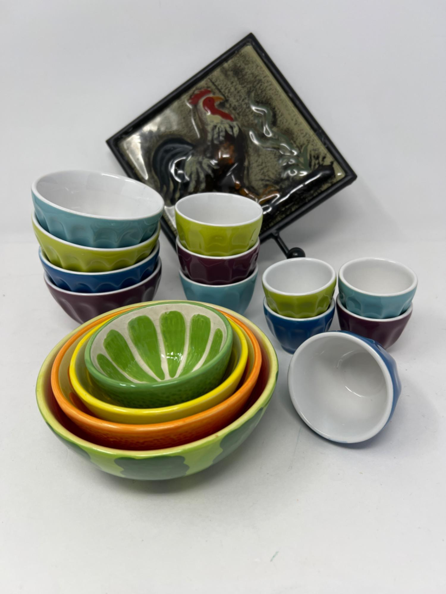 Lot # 151 - Kitchen Measuring Aids and Stoneware Cups