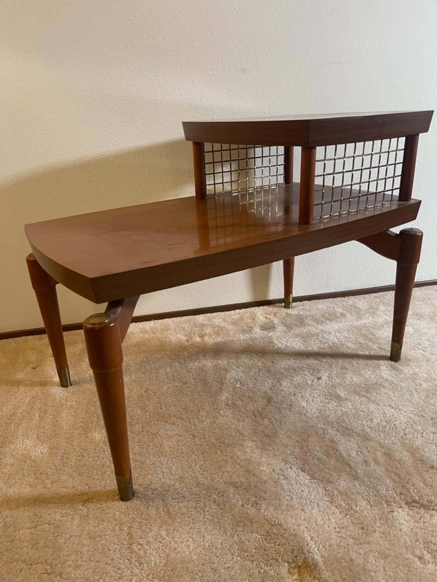 Mid Century Modern F.S. Harmon & Co Side Table With Rocket Legs #1 Good used condition. Small scuffs and scratches to table edges and top. Please see photos.