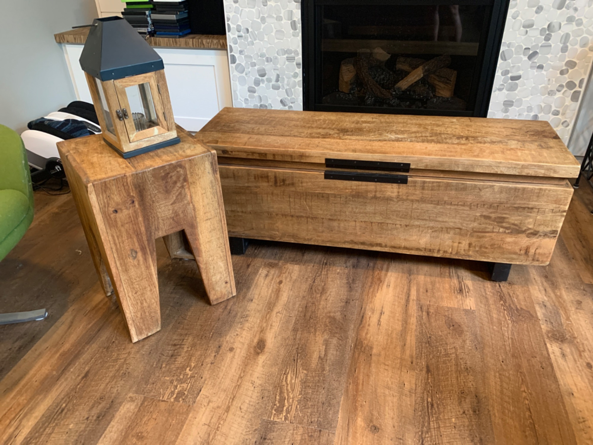 Lot # 35 - Mango Wood Table/Trunk, End Table and Lantern