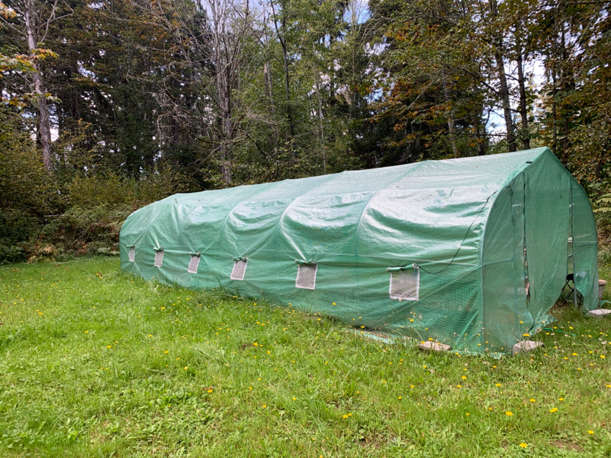 Does not include contents inside greenhouse. With exception of grow lights. Large greenhouse with windows, doors on each end. Roof on one side appears to be degrading. See pics One pole has been slightly bent. See pics. Must bring tools to dismantle. Espird grow light set is LED Approximately 10 feet wide by 30 feet long by 8 feet tall.