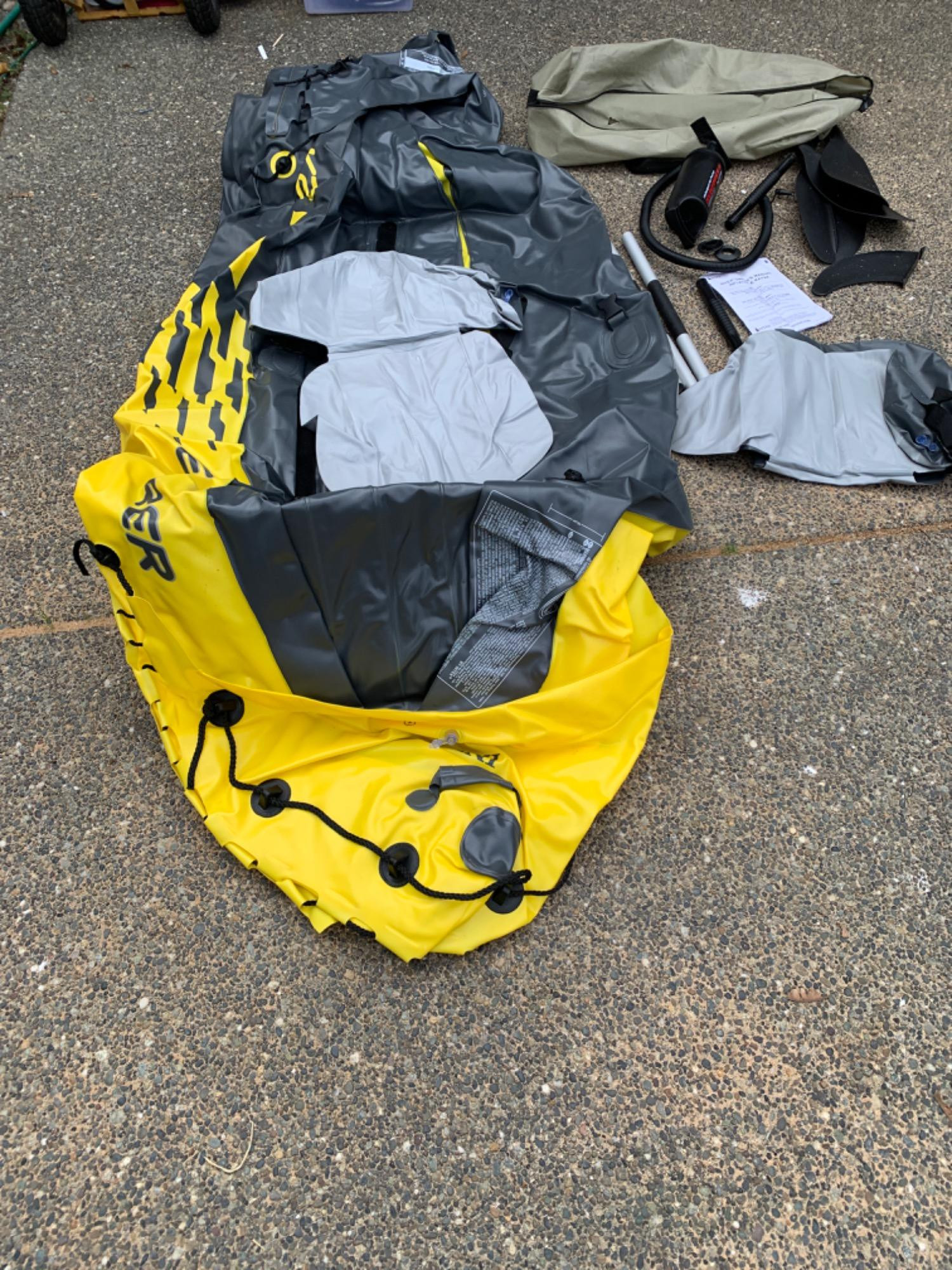 Like new, doesn't appear to be used. Includes paddles, pump, seats, carry bag and rudder. Intex Explorer K2 Kayak. Max weight is 400lbs. Two people.