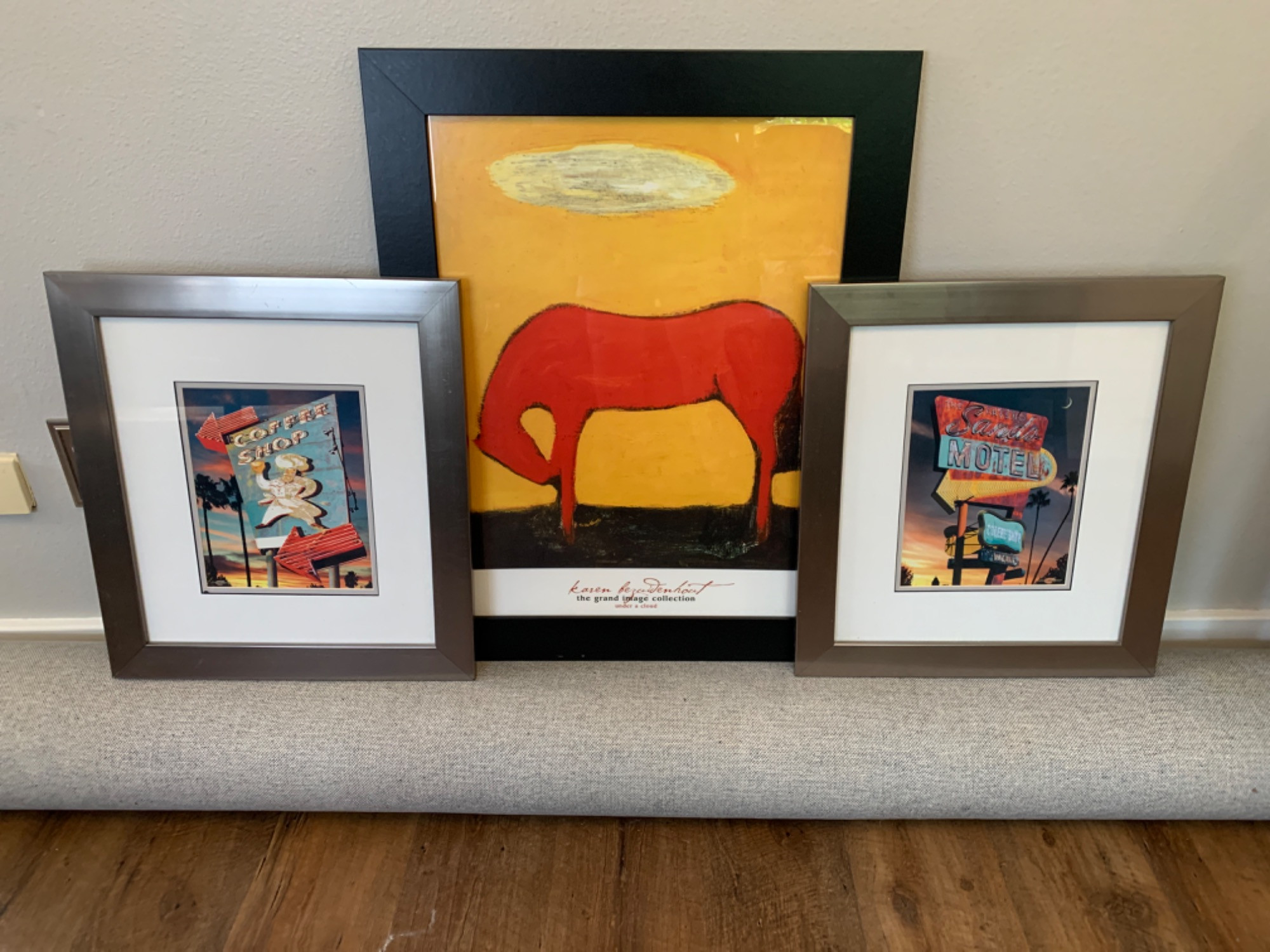 Artist Karen Bezuidenhout print of horse "under a cloud". Retro art of vintage neon signs by Larry Grossman. Metal framed 17x11