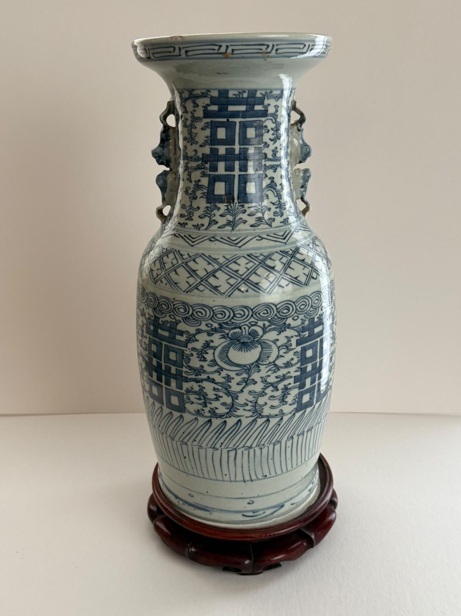 Lot # 16 - Antique Asian Blue and White Two-Handled Vase-Possibly Qing