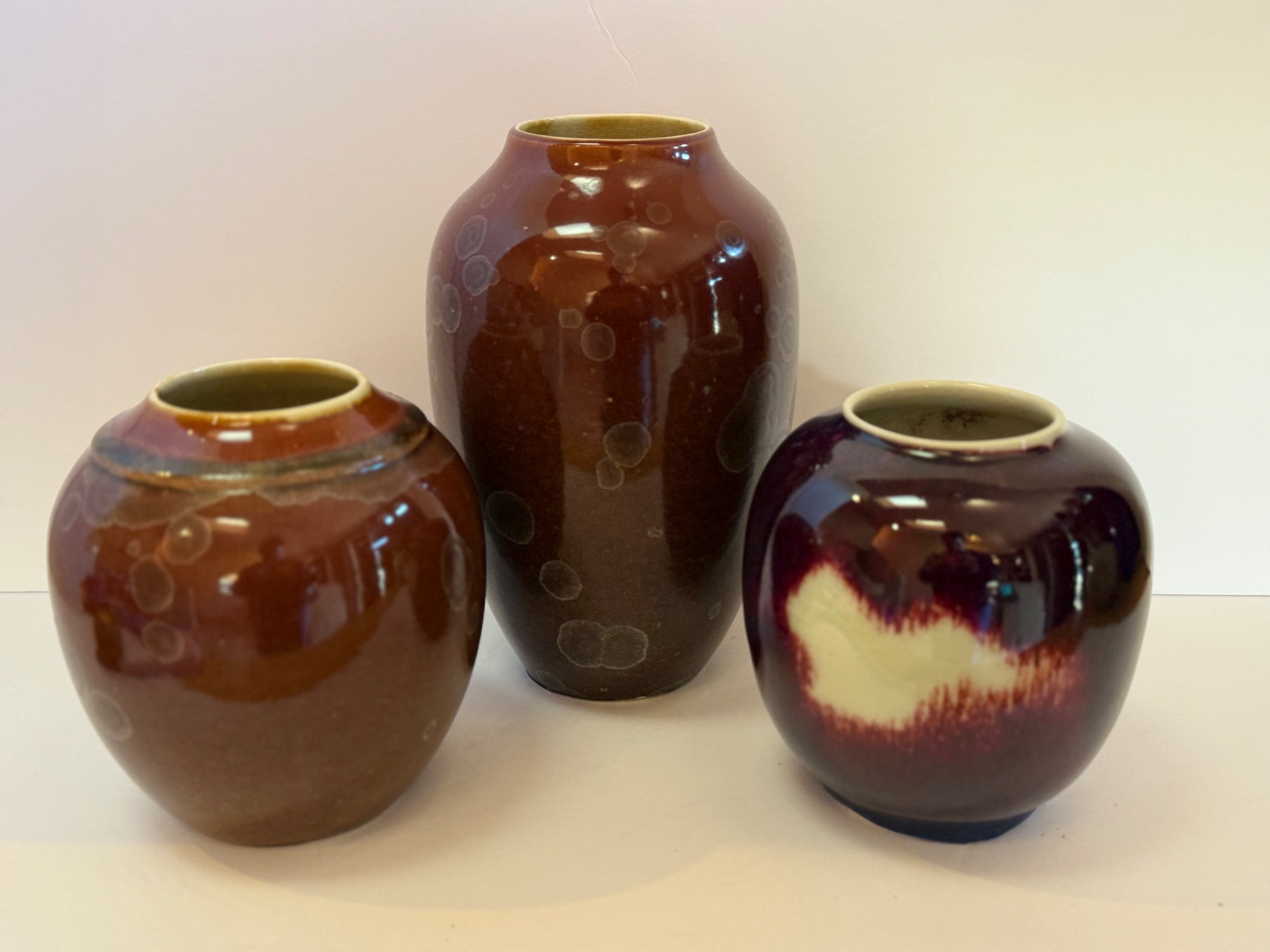 Brown Tone Glazed Arcanum Studio Porcelain Vases. Measures 5.5” - 8.5” tall