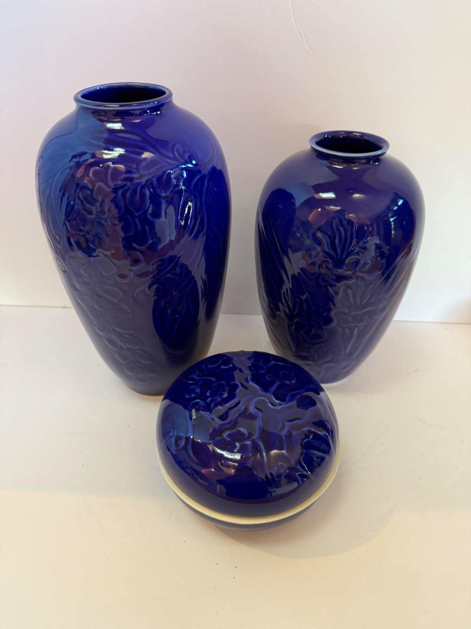 Lot # 115 - Arcanum Studio Blue Vases and Jewelry Box