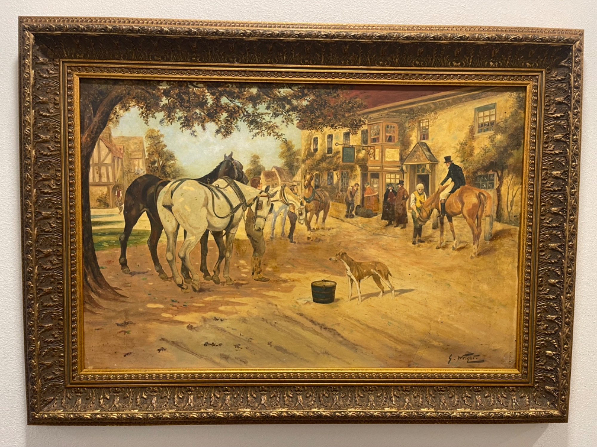 ORIGINAL George S. Wright Original Oil Painting - British Artist Frame: 29.5' W x 21.5" H This painting has recently been repaired. The owners paid $3,000 for repairs. It is not perfect. Still some defects. Please see photos.