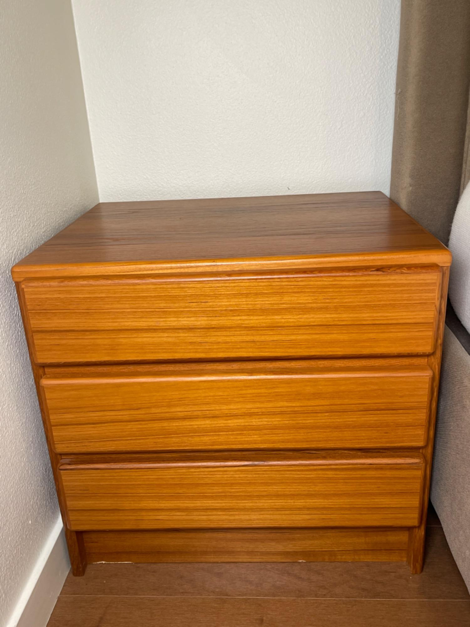 QUALITY Canada Designer Teak Veneered Mid Century Bedside Table #2 Danish style. Good used condition. Minor scuffs and scratches. See photos.