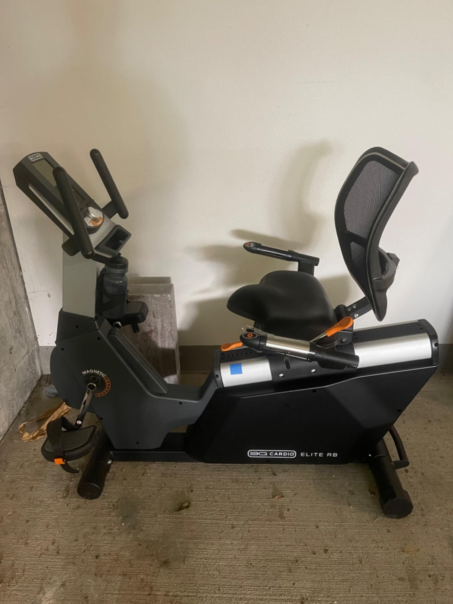 BG Cardio Elite RB Exercise Bike Click here to see specs on this bike One handle has a piece broken off of it. Untested. NO CORDS INCLUDED.