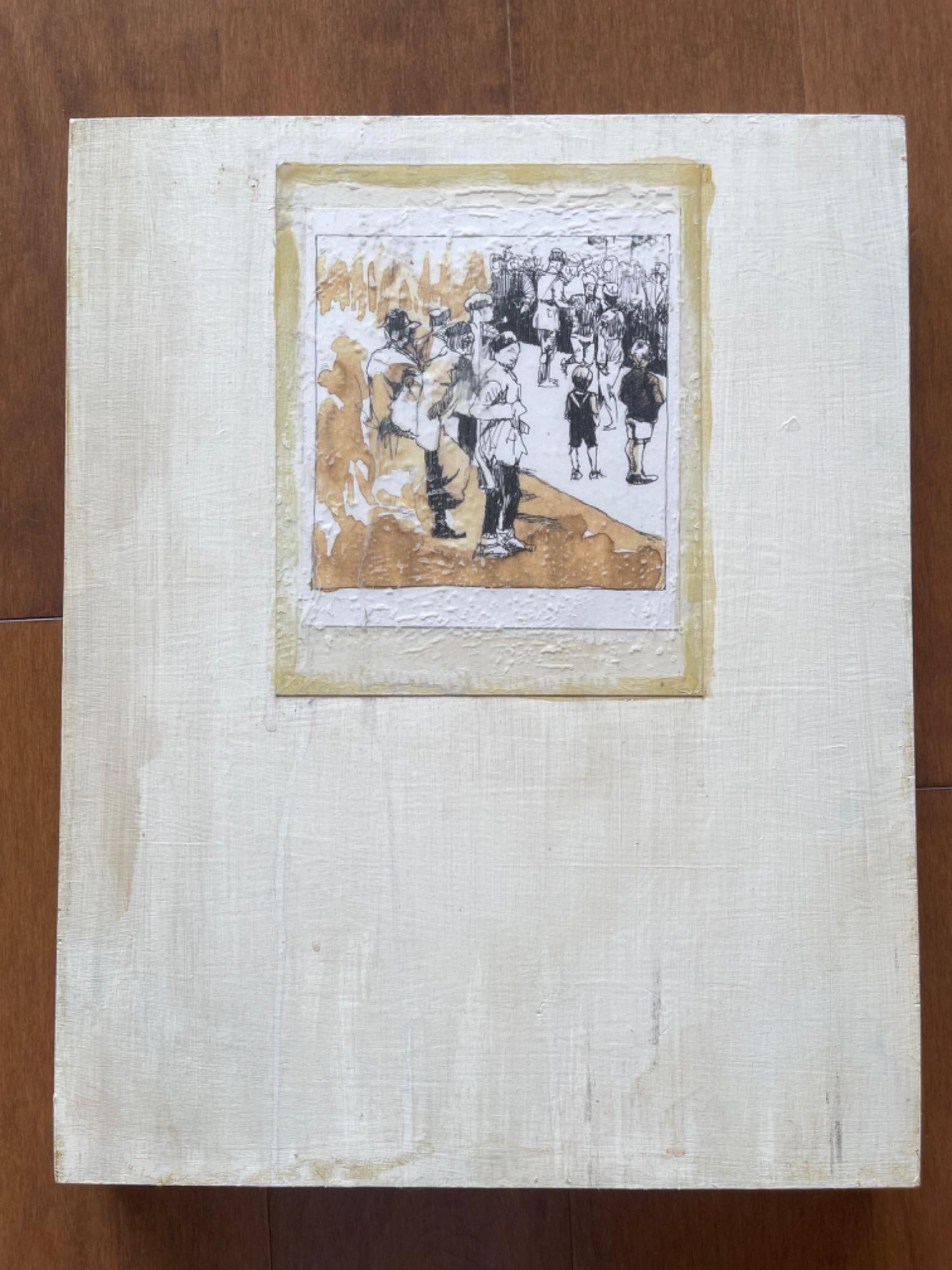 Miha Sarani Mixed Media Art - Historical Photograph - Signed The smaller painting with people standing around is mixed media by local artist and UW professor Miha Sarani. This painting is a portrait of a historical photograph taken of the Nazi recruitment of young boys into Hitler's youth. Good used conditoin.