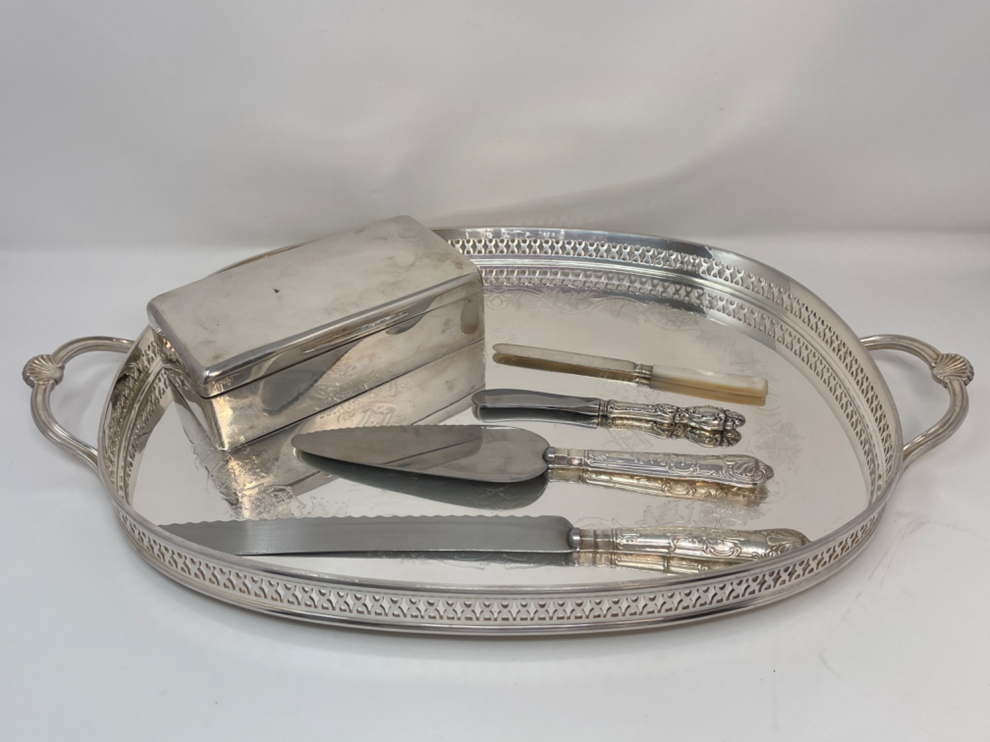 Lot # 81 - Vintage Silver Plate Pieces and Stainless Steel Knives