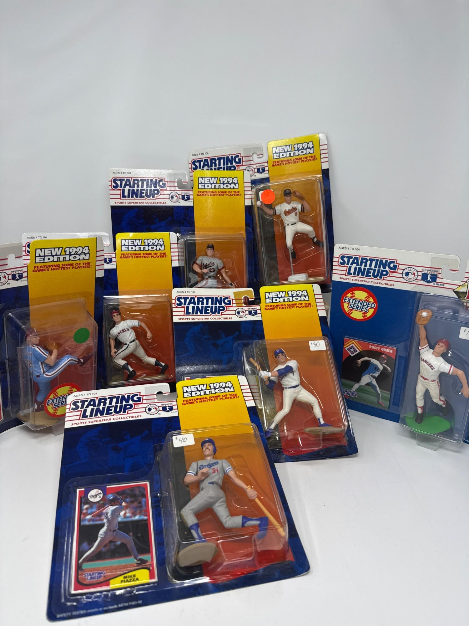 New inbox. Starting lineup 1994, 1995 edition baseball collectibles. All include new trading cards. Mike Piazza, Steve Carlton, Rusty Greer, Ivan Rodriguez, Chad Curtis, Cal Ripken Jr, Chris Hoiles.