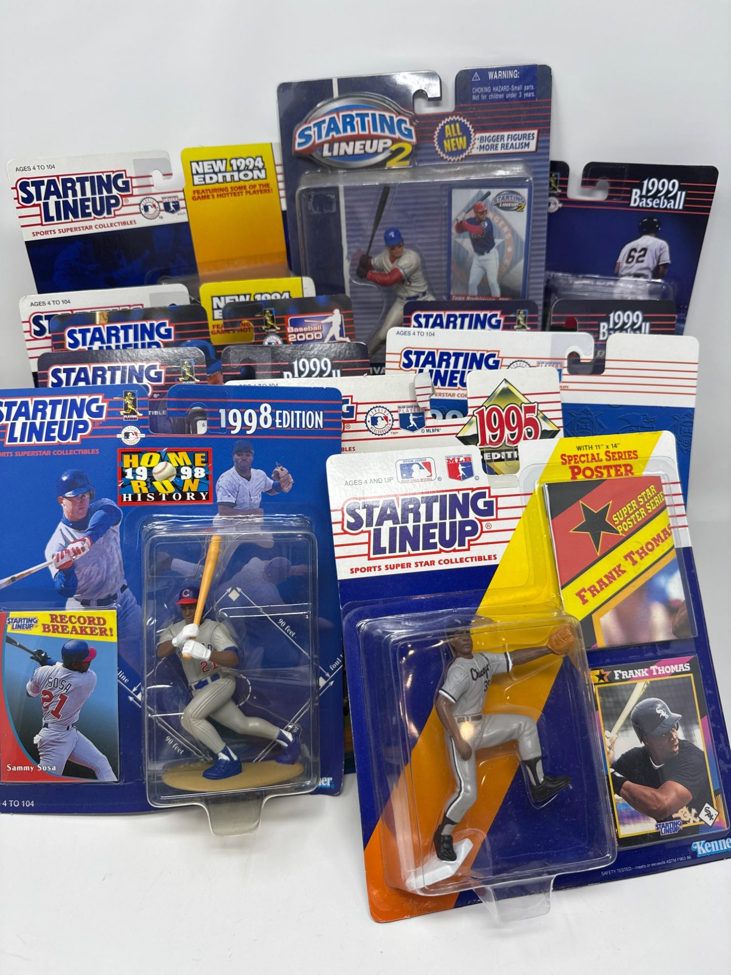 NIB. Sets include collector cards and some with posters. Sammy Sosa, Frank Thomas, Jose Cruz Junior, Moises Alou, Brian Hunter, Shane Reynolds, Jeff Bagwell, Darryl Kile, Ivan Rodriguez, Kerry Wood, Jon Olerud.