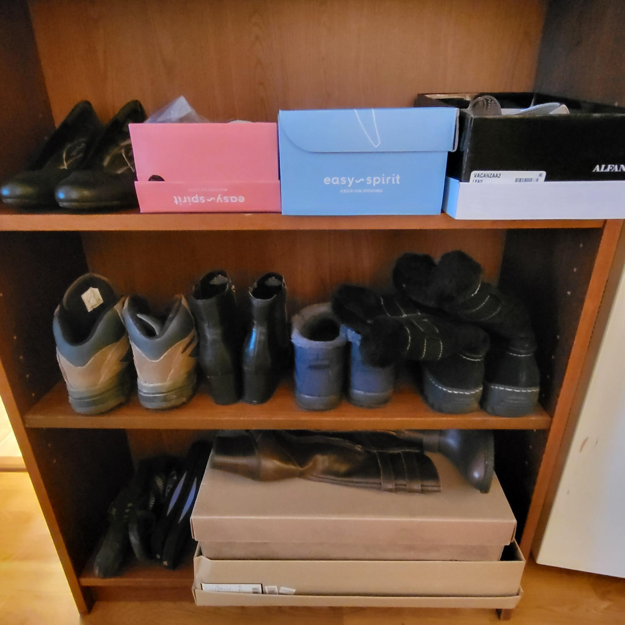 Women's Leather Born Boots, Leather Cole Haan black boots, Easy Spirit sandals, slippers and more. Sizes 7.5 to 8.5.