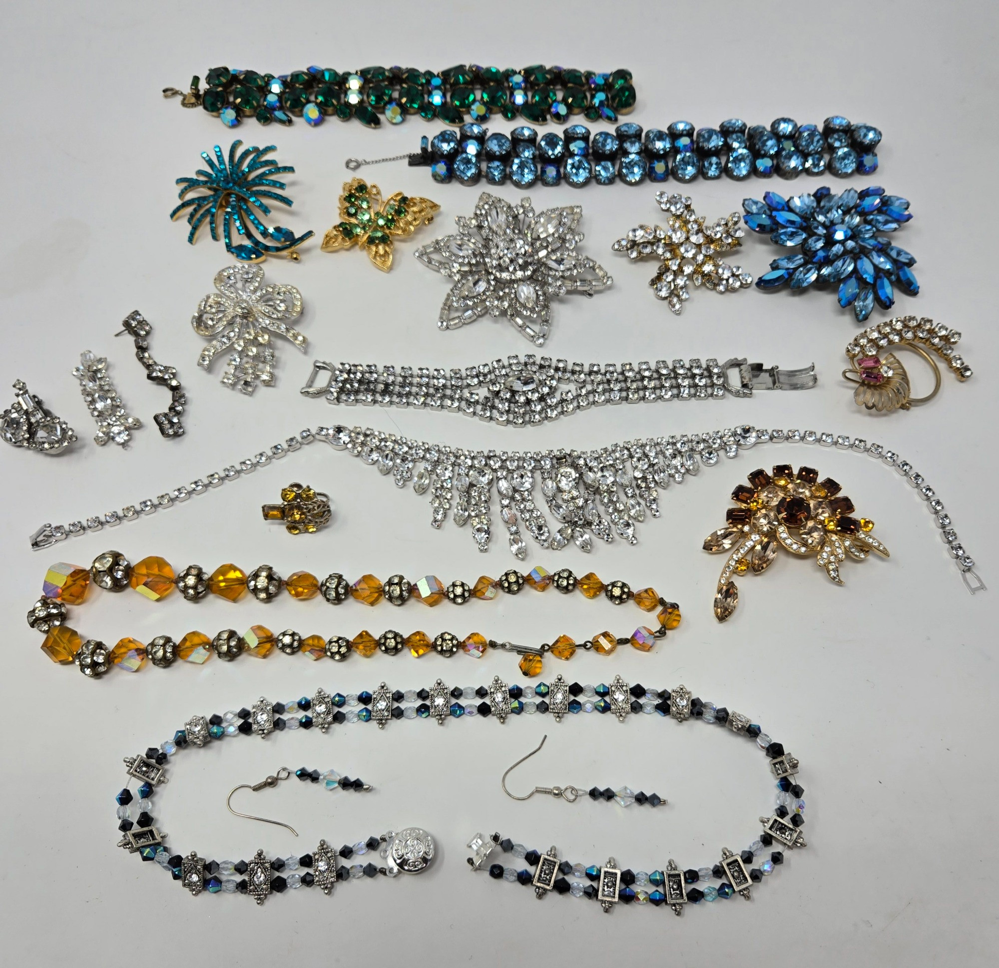 Lot # 93 - Vintage Rhinestone Jewelry Lot – Regency & Weiss Brooches & Bracelet