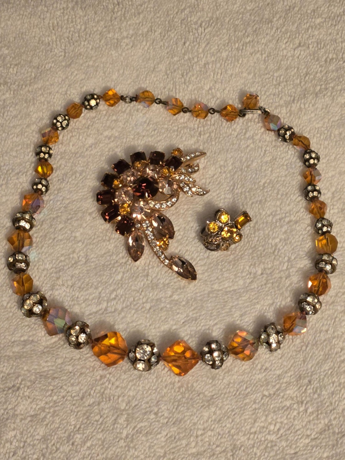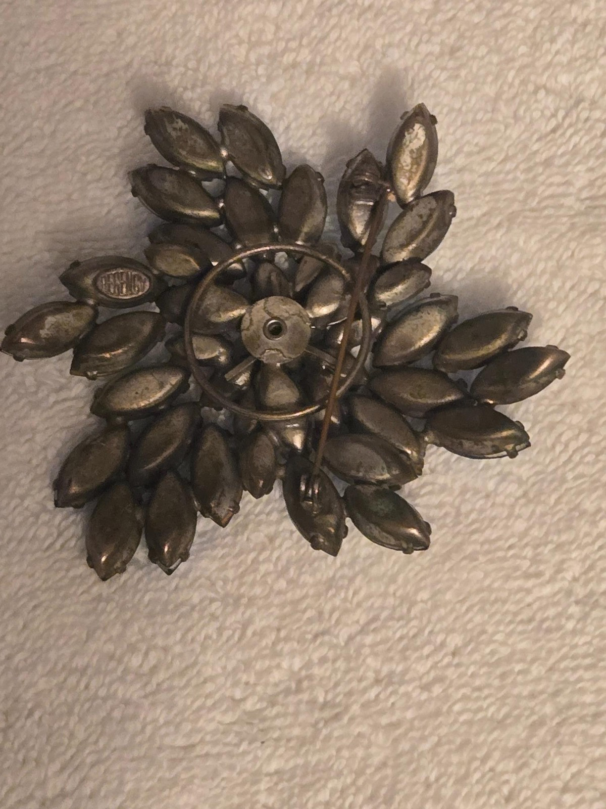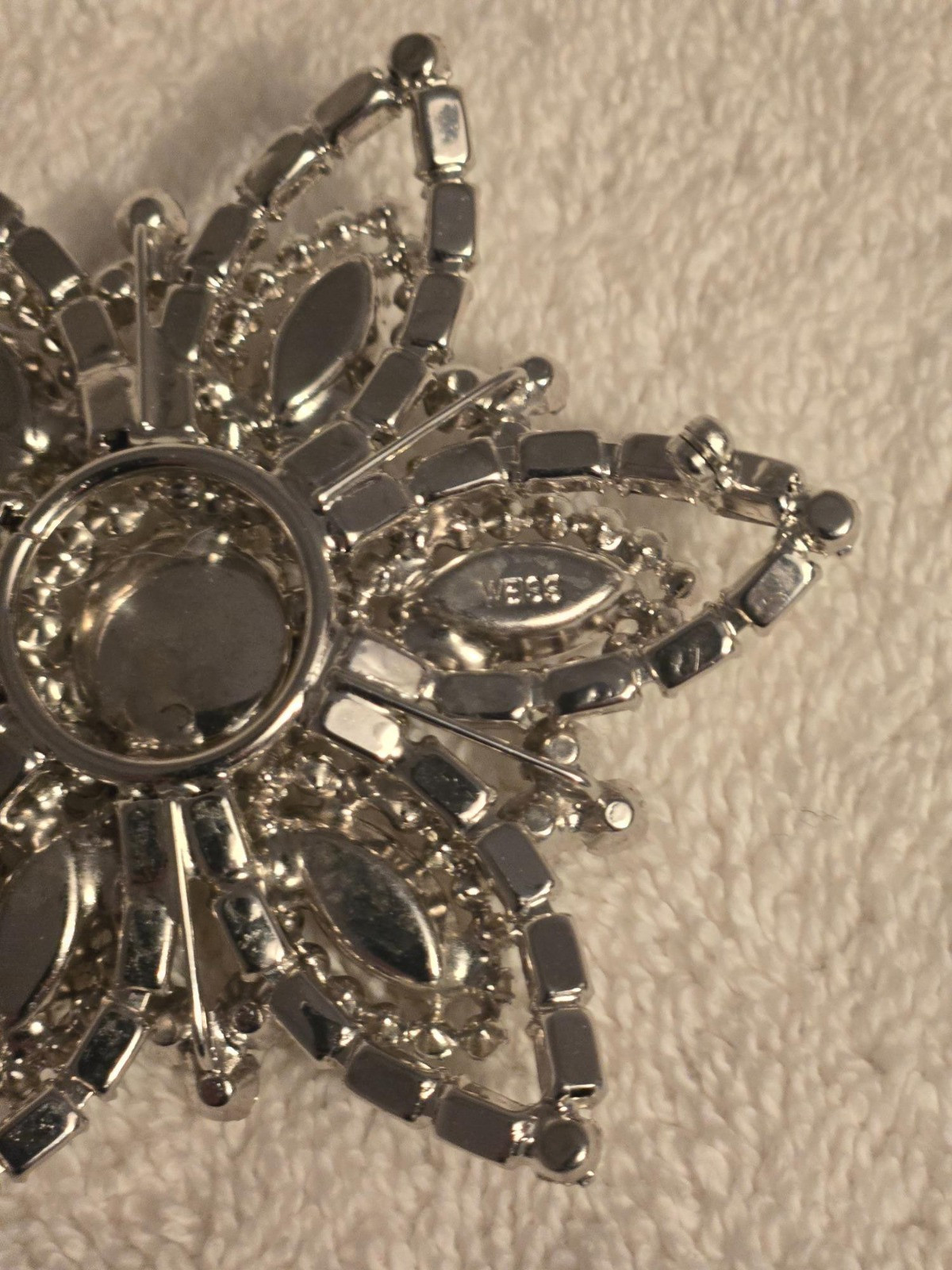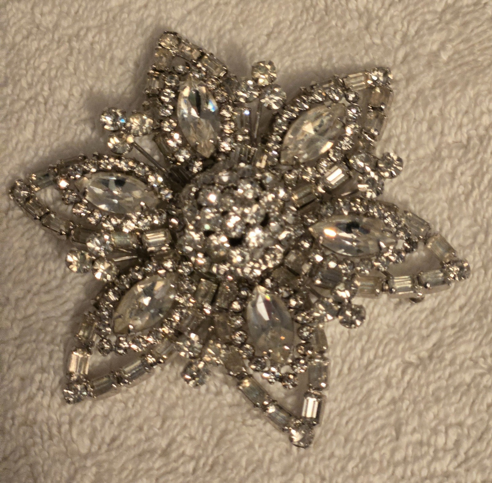 This stunning vintage jewelry collection features dazzling pieces from Regency and Weiss, including a Blue Regency Rhinestone Brooch, a Large 6-point Weiss brooch, and a Green Regency brooch. Also included is a Blue Rhinestone Bracelet with no visible markings, adding to the timeless elegance of this lot. Each piece showcases intricate craftsmanship and vibrant rhinestones, making this collection perfect for vintage jewelry collectors, costume jewelry lovers, or those seeking unique statement pieces.