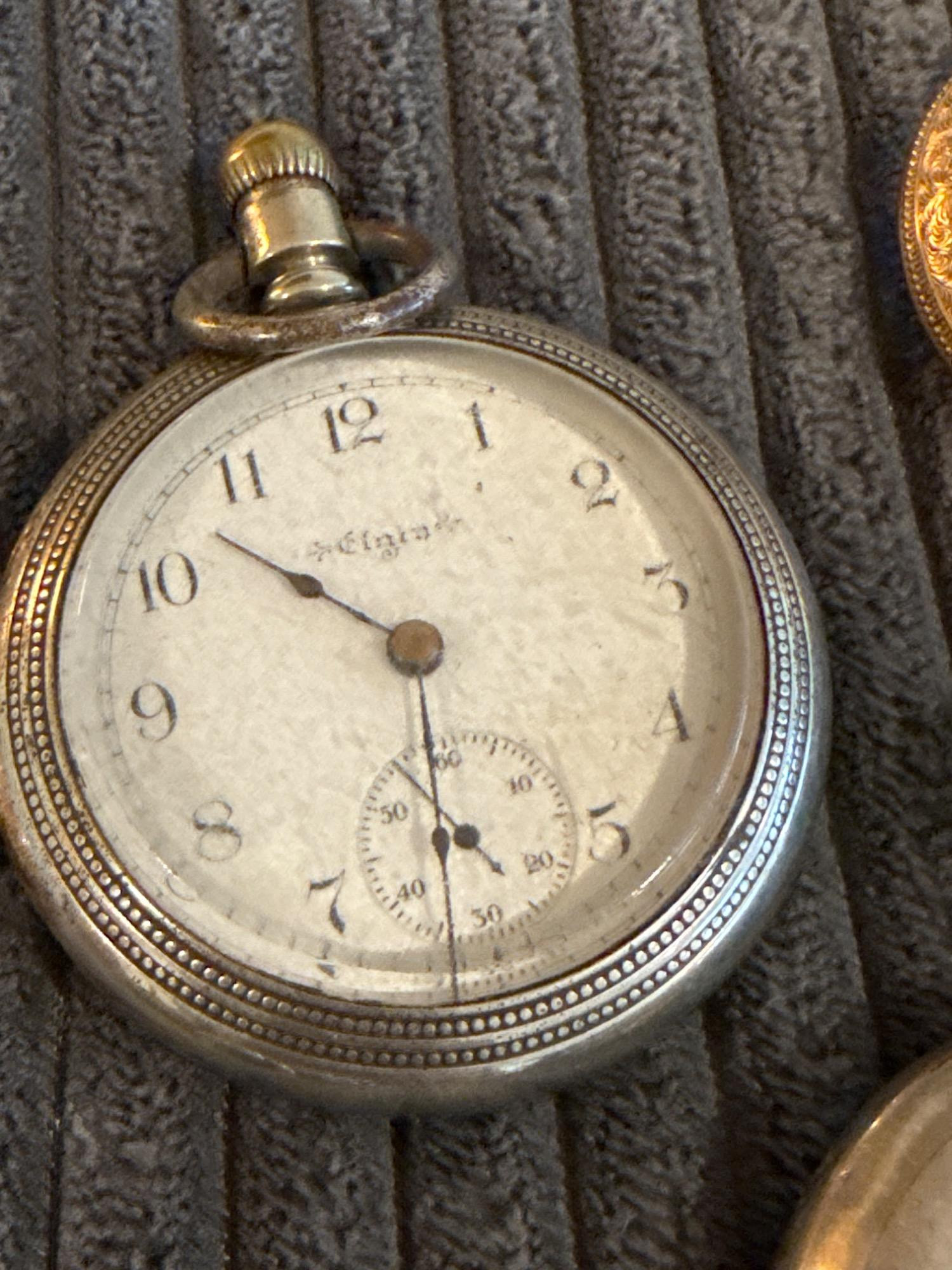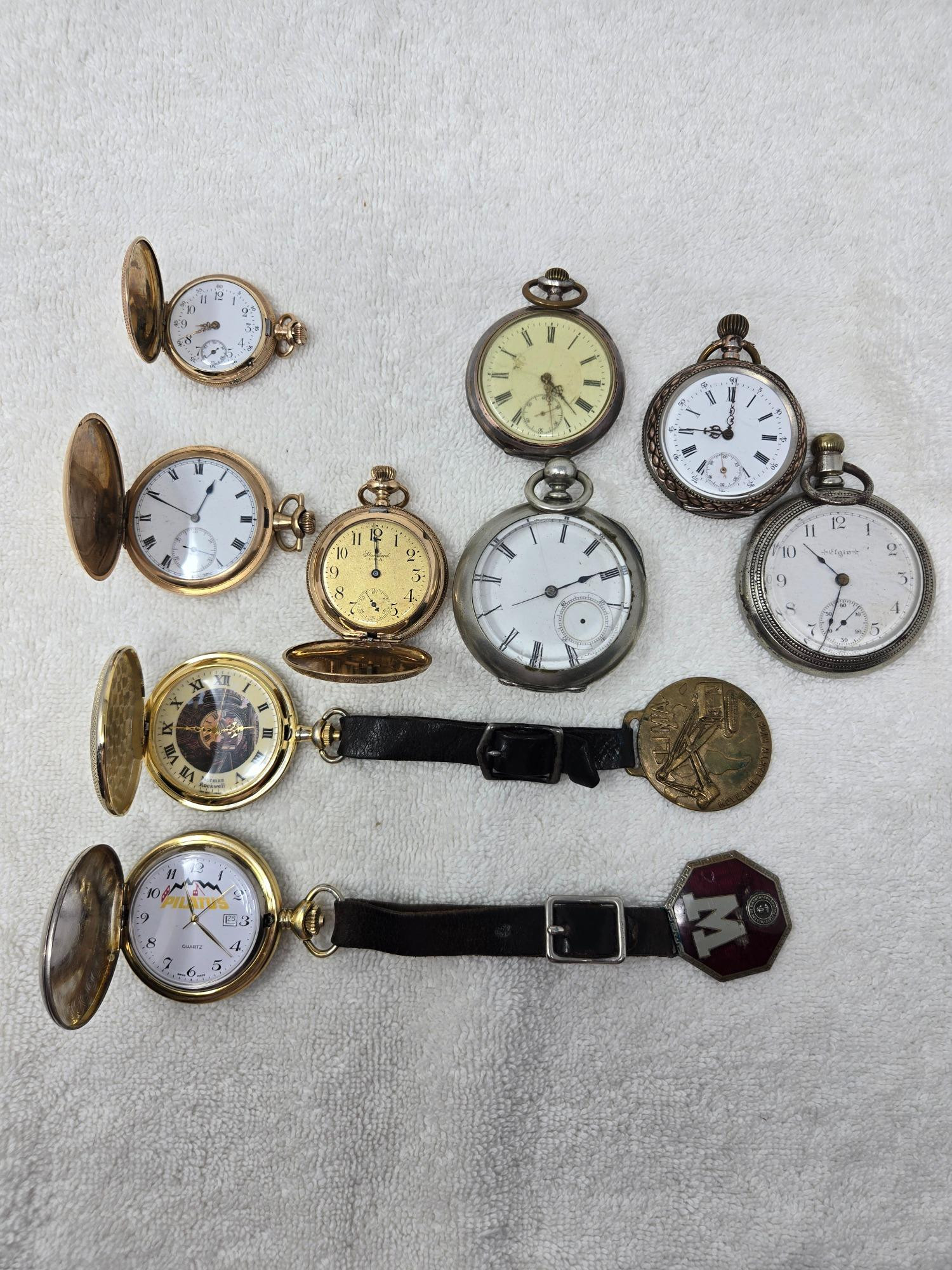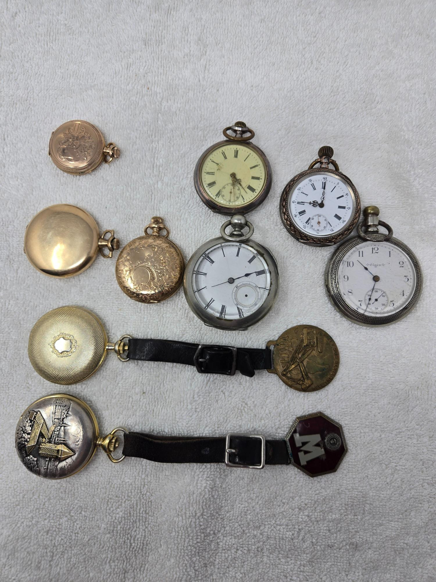This collection includes a variety of vintage pocket watches, each with its own unique charm. Among them is a special piece inspired by the artwork of Norman Rockwell, adding historical and artistic value. Some watches show signs of age and wear, making them perfect for collectors, restoration projects, or display.