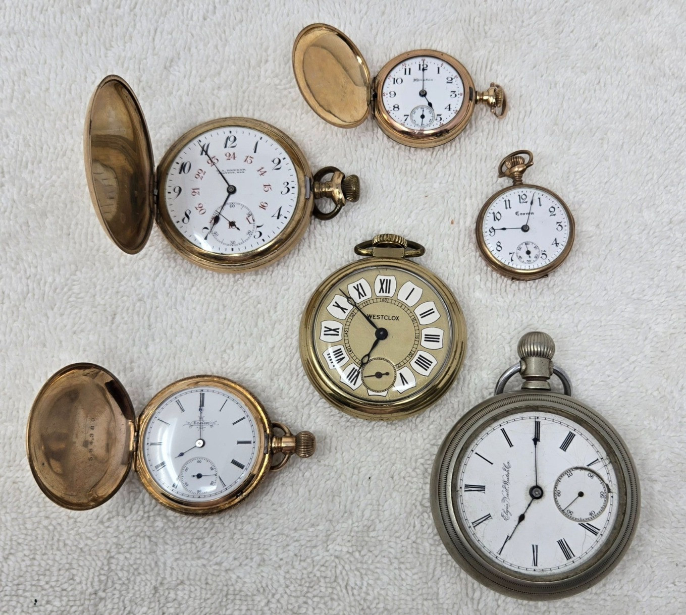 This assorted lot of vintage pocket watches includes a mix of beautifully crafted antique timepieces, with one featuring the renowned Elgin brand. Elgin pocket watches may not be Swiss-made, but they hold a significant place in American horology, having shaped the pocket watch industry for over a century. As an understated yet timeless timepiece, you may wonder, "Why do collectors love antique Elgin pocket watches?" The answer lies in Elgin’s long-standing reputation for precision, craftsmanship, and reliability, making their watches a cherished addition to any collection. This lot is perfect for collectors, watch restorers, or vintage enthusiasts looking to own a piece of American watchmaking history. Some watches may require servicing or restoration.