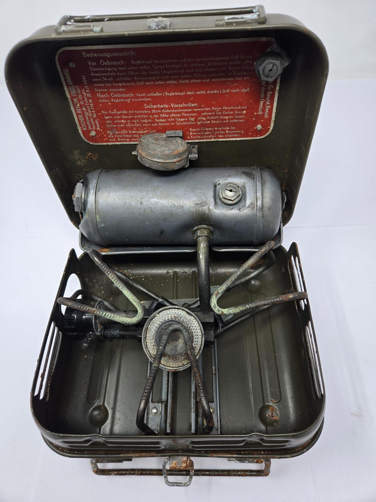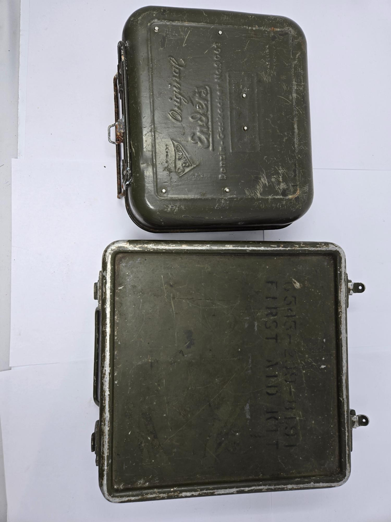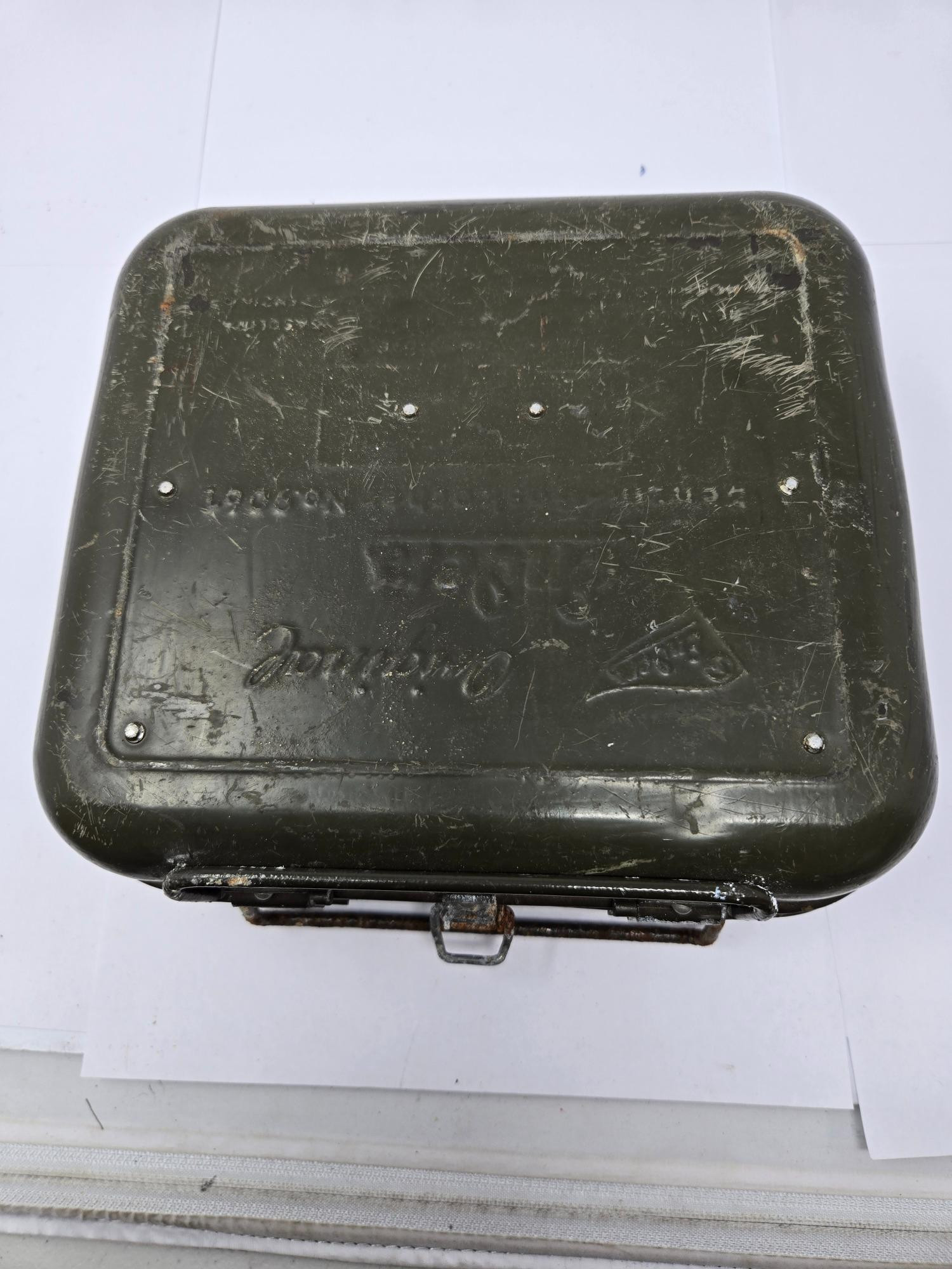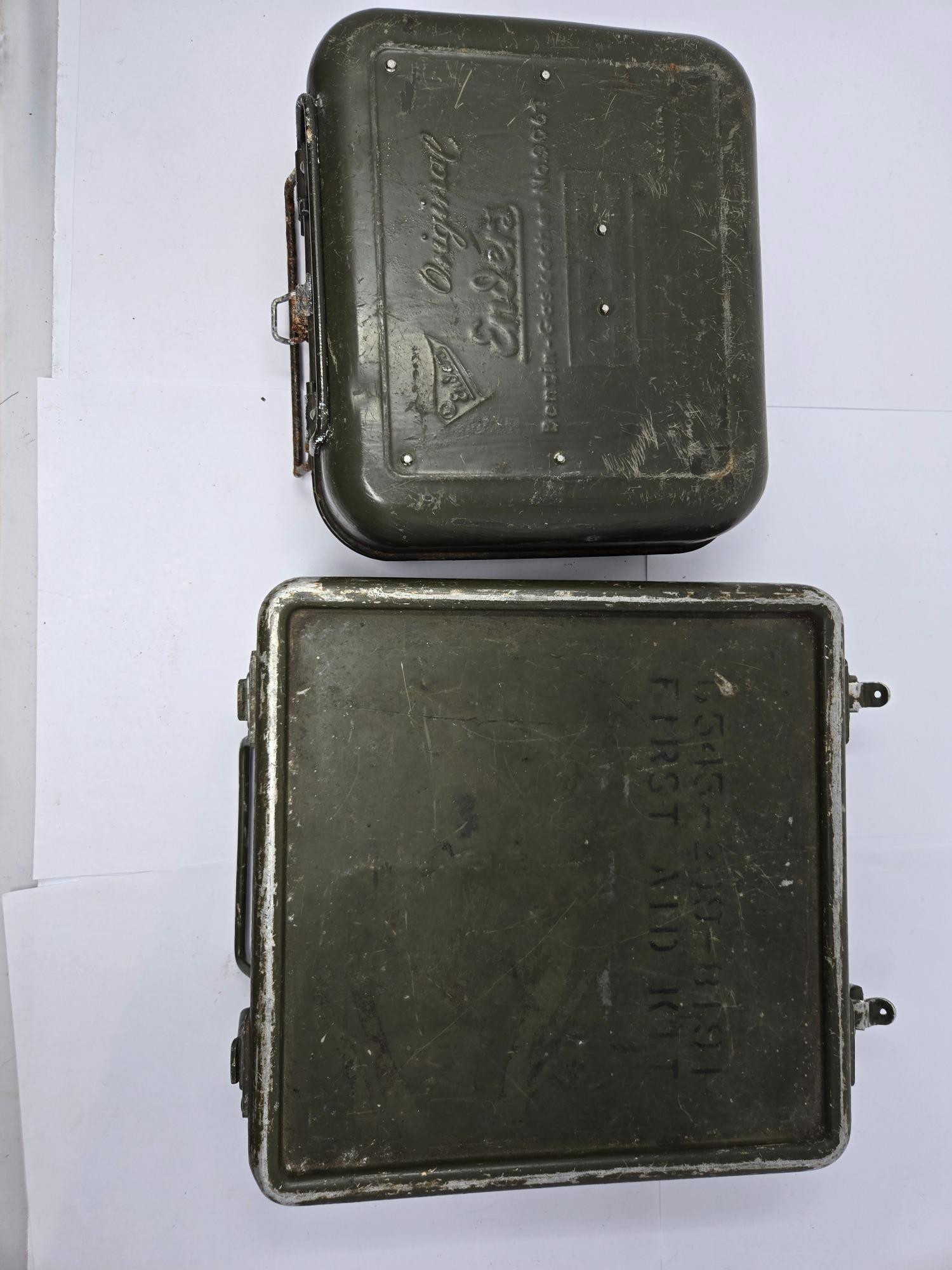 This vintage military first aid kit is a well-stocked survival essential, containing a variety of emergency supplies. Inside the durable metal case, you'll find candles, safety pins, utensils, medical items, and even travel propane, making it a unique and functional collector’s piece. Ideal for military memorabilia collectors, survival enthusiasts, or those looking for an authentic piece of history. A rare find with practical and historical value!