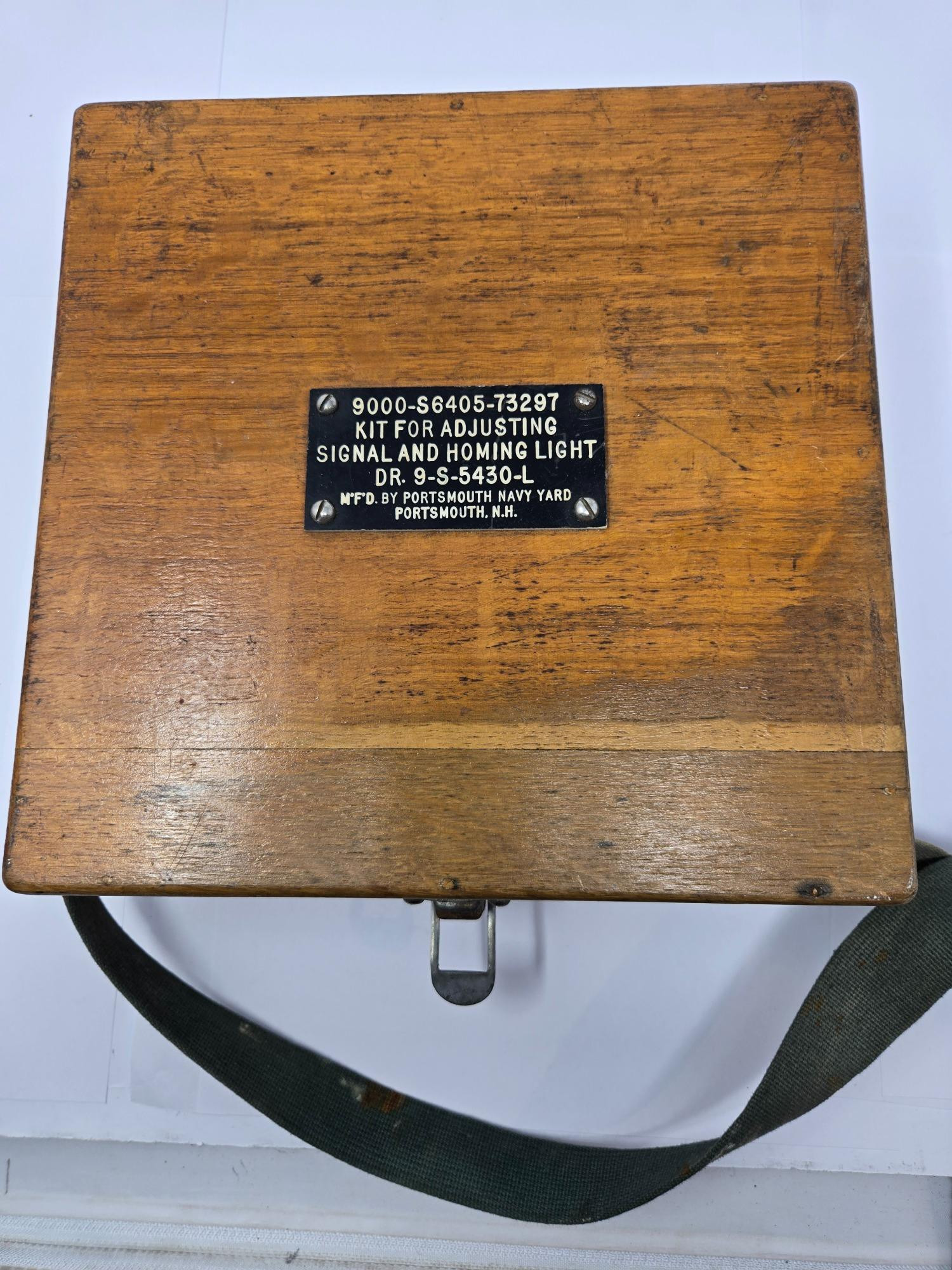 This vintage U.S. Navy kit was used for adjusting signal and homing lights, featuring a classic analog multimeter, an essential electrical testing device for measuring voltage, current, and resistance. Encased in a sturdy wooden box with a strap, this piece is both functional and collectible, making it a great find for military memorabilia enthusiasts, vintage electronics collectors, or history buffs. A rare and fascinating glimpse into historical naval technology!