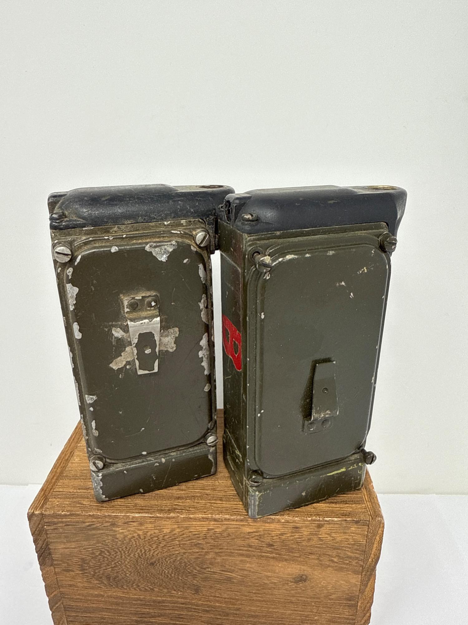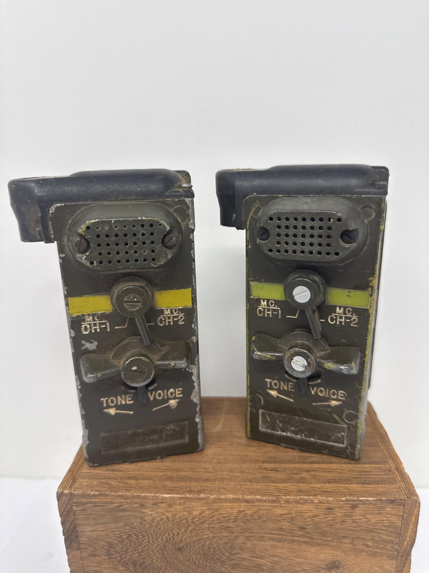 This vintage military lot includes two field radios and a classic military compass, both showcasing rugged military design and functionality. The radios feature original dials, switches, and speakers, adding to their collectible appeal, while the compass comes with its protective cover, making it a great addition for military memorabilia collectors, survival enthusiasts, or historical gear enthusiasts. A unique set for display or restoration!