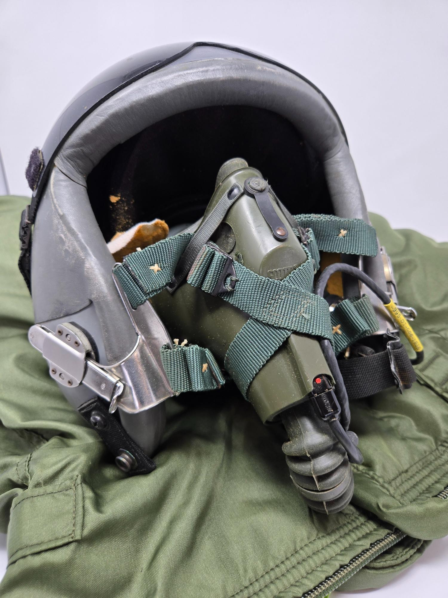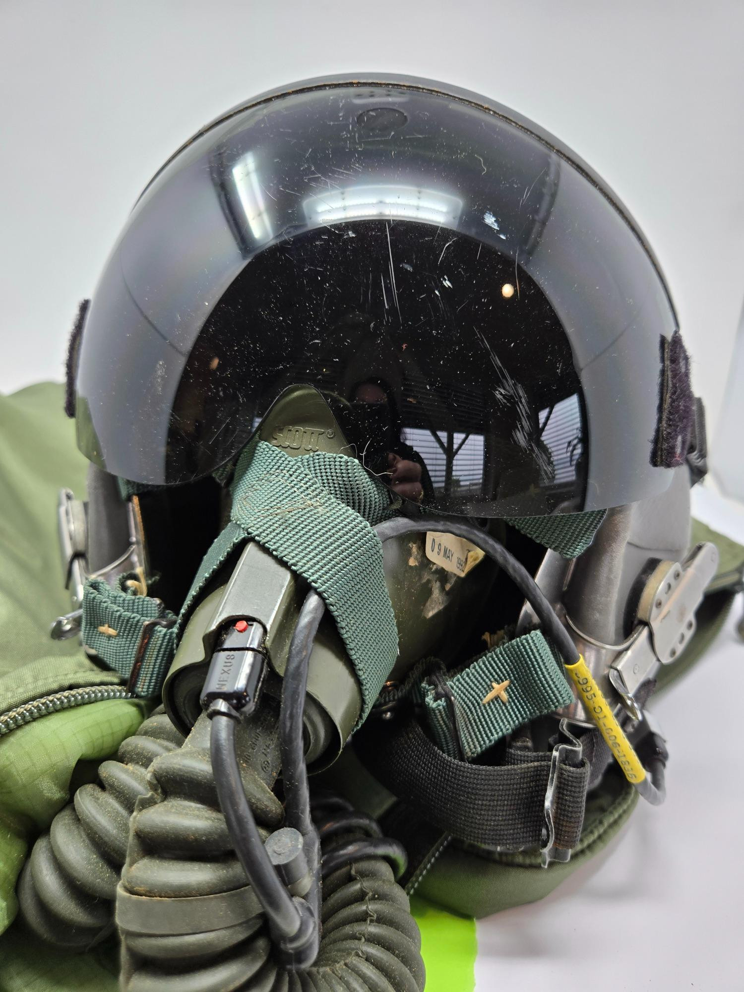 This authentic Air Force fighter pilot helmet is a classic piece of military aviation gear, designed for protection, communication, and enhanced visibility in high-speed aerial combat. Fighter pilot helmets have evolved over time, with modern advancements leading to the Next Generation Fixed Wing Helmet, which offers improved visibility and a better fit for all pilots, including female aviators. This helmet features a dark visor, oxygen mask with hose, and adjustable straps, making it a great addition for collectors, aviation enthusiasts, or military memorabilia displays. A unique and historically significant piece of Air Force gear!
