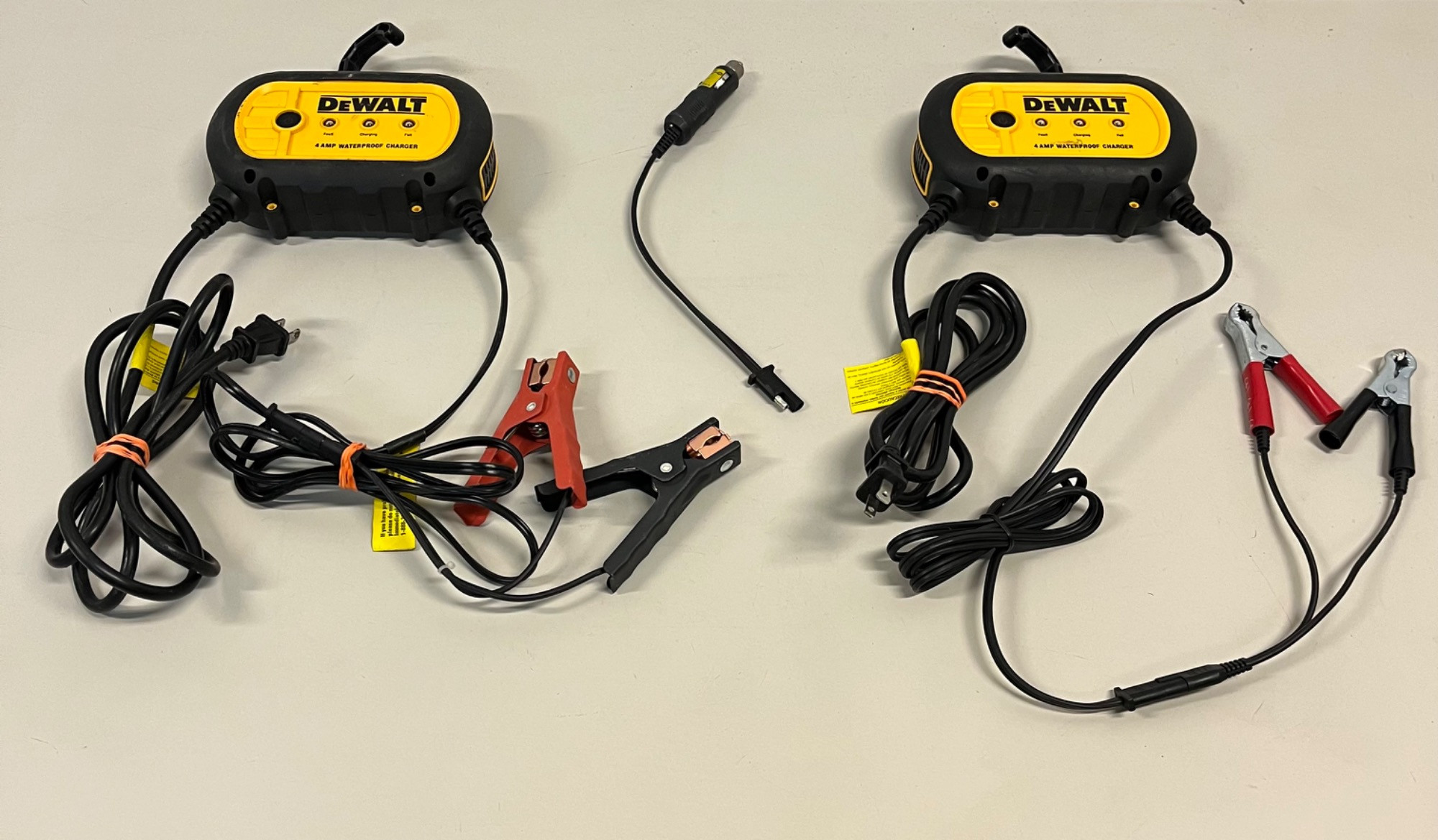 2 DeWalt 4 Amp Waterproof Battery Chargers with Attachment