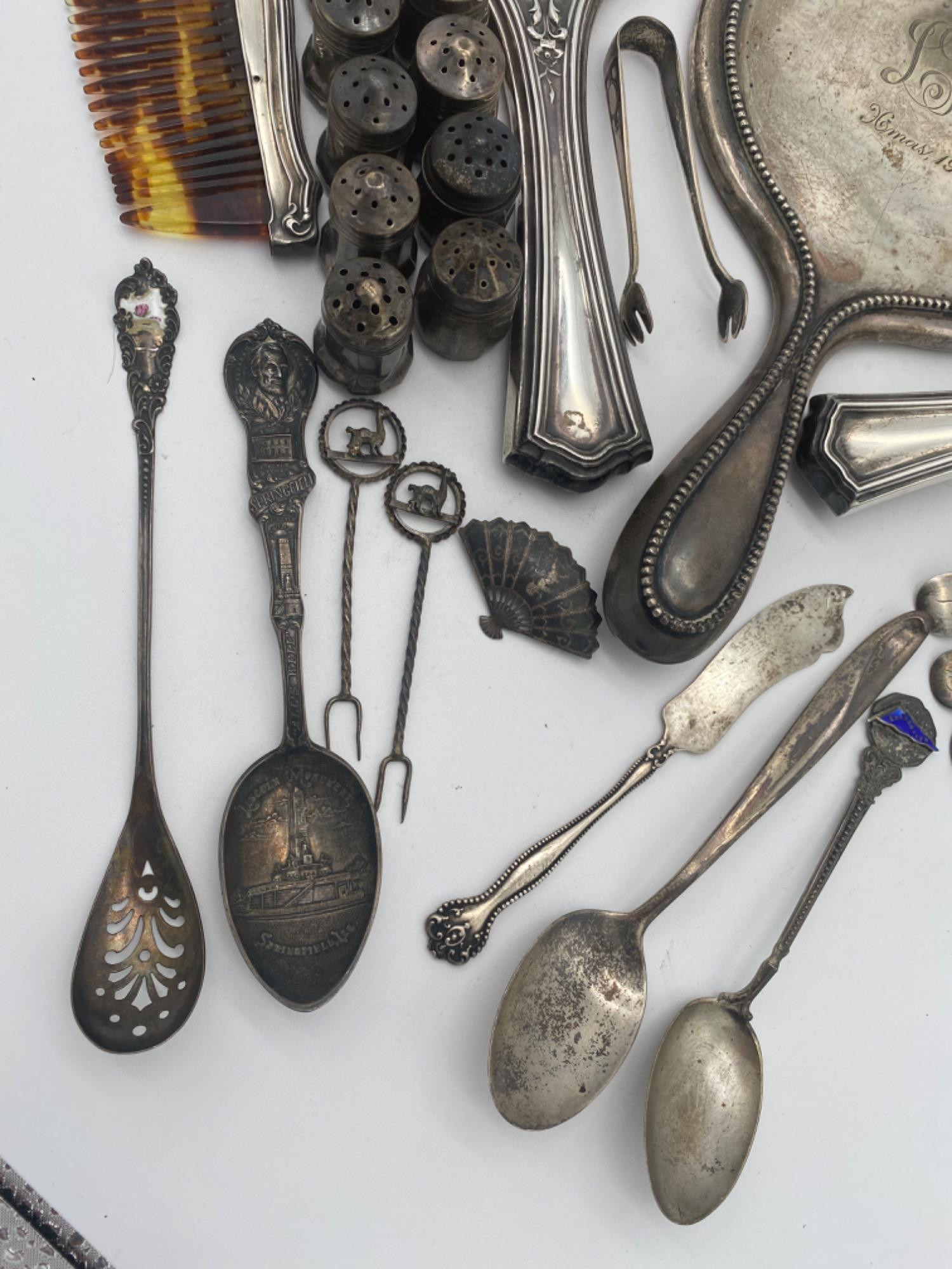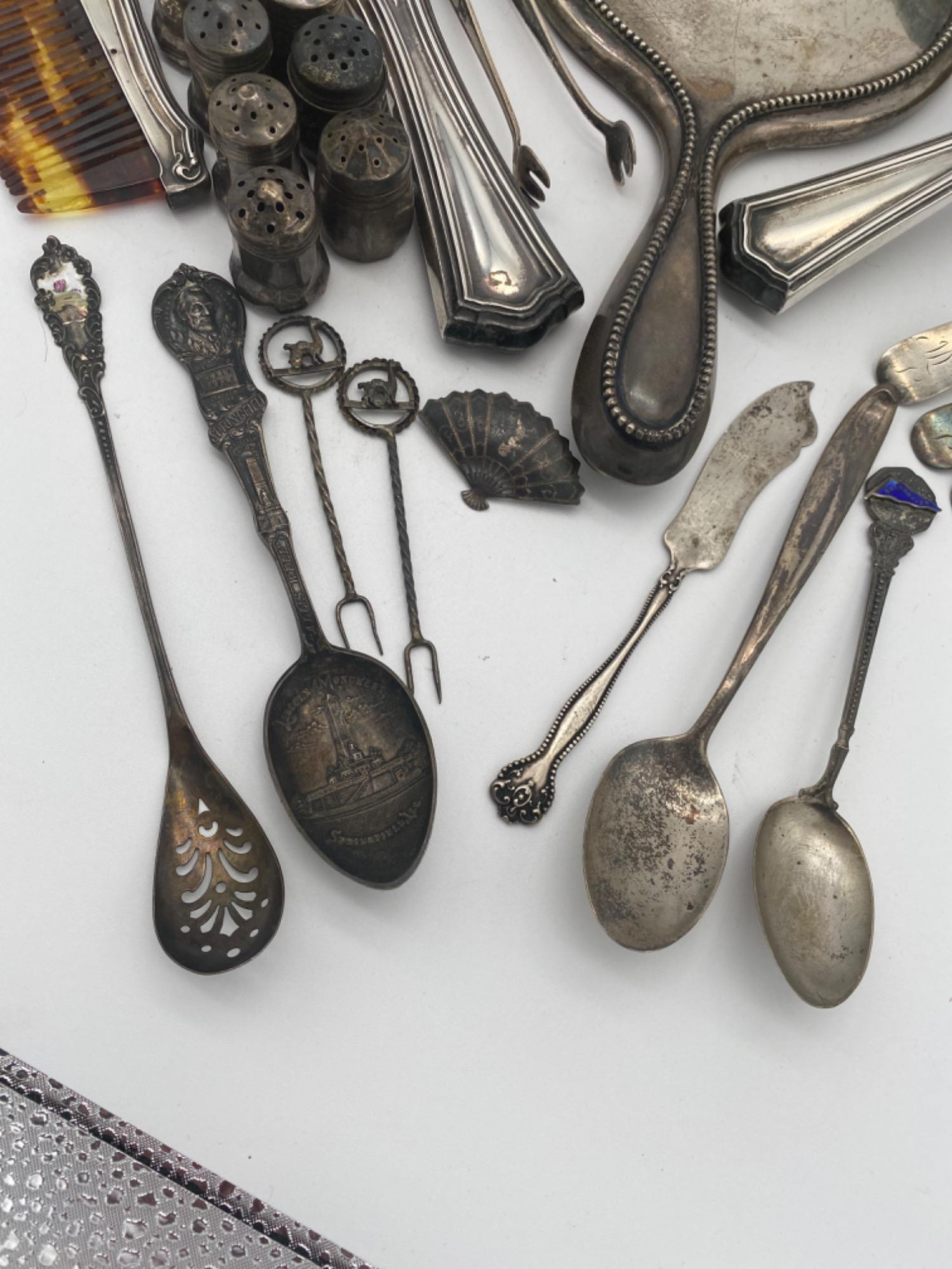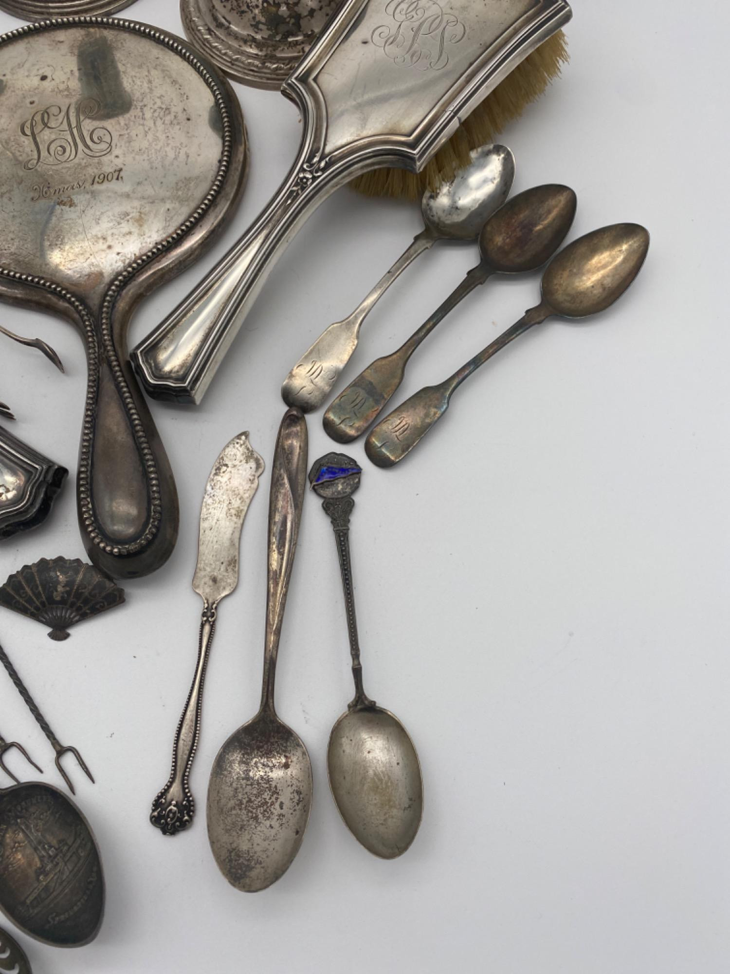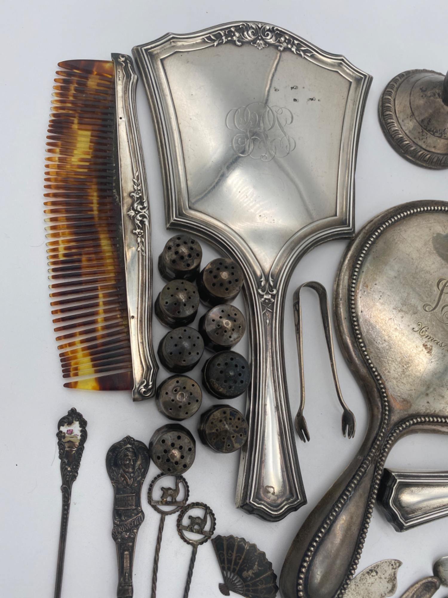 Lot # 6 - Collection of Sterling Silver Mirror & Brush Set, Spoons, & More