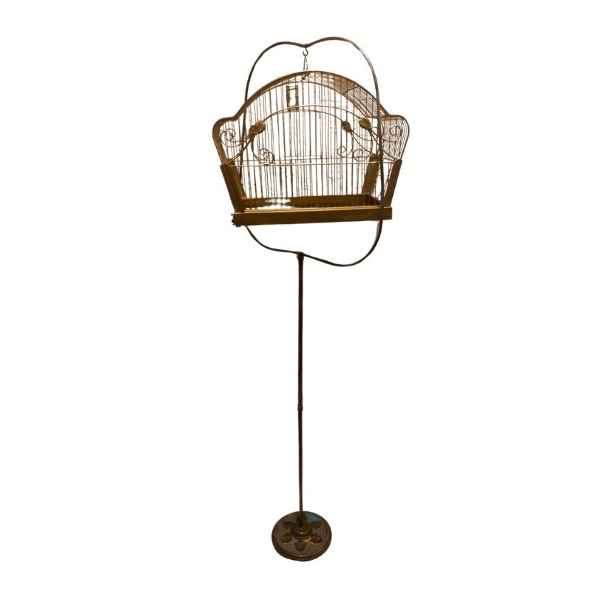 Lot # 7 - Vintage Gold Tone Bird Cage w/ Stand - Unique Shape & Design