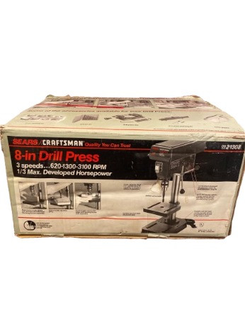 Craftsman 8 Inch Drill Press - New in Box (Untested). Craftsman Number 09-21308. This versatile drill press is designed for accuracy and ease of use, perfect for hobbyists and professionals alike. While the unit is untested, it remains in its original packaging, offering a great opportunity for those looking to add a high-quality tool to their workshop.