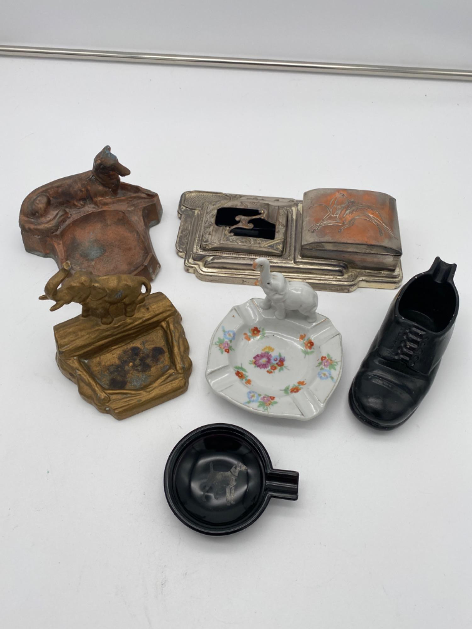 Lot # 38 - 6 Vintage Metal & Porcelain Ashtrays: Animals, Shoe, & Other Designs