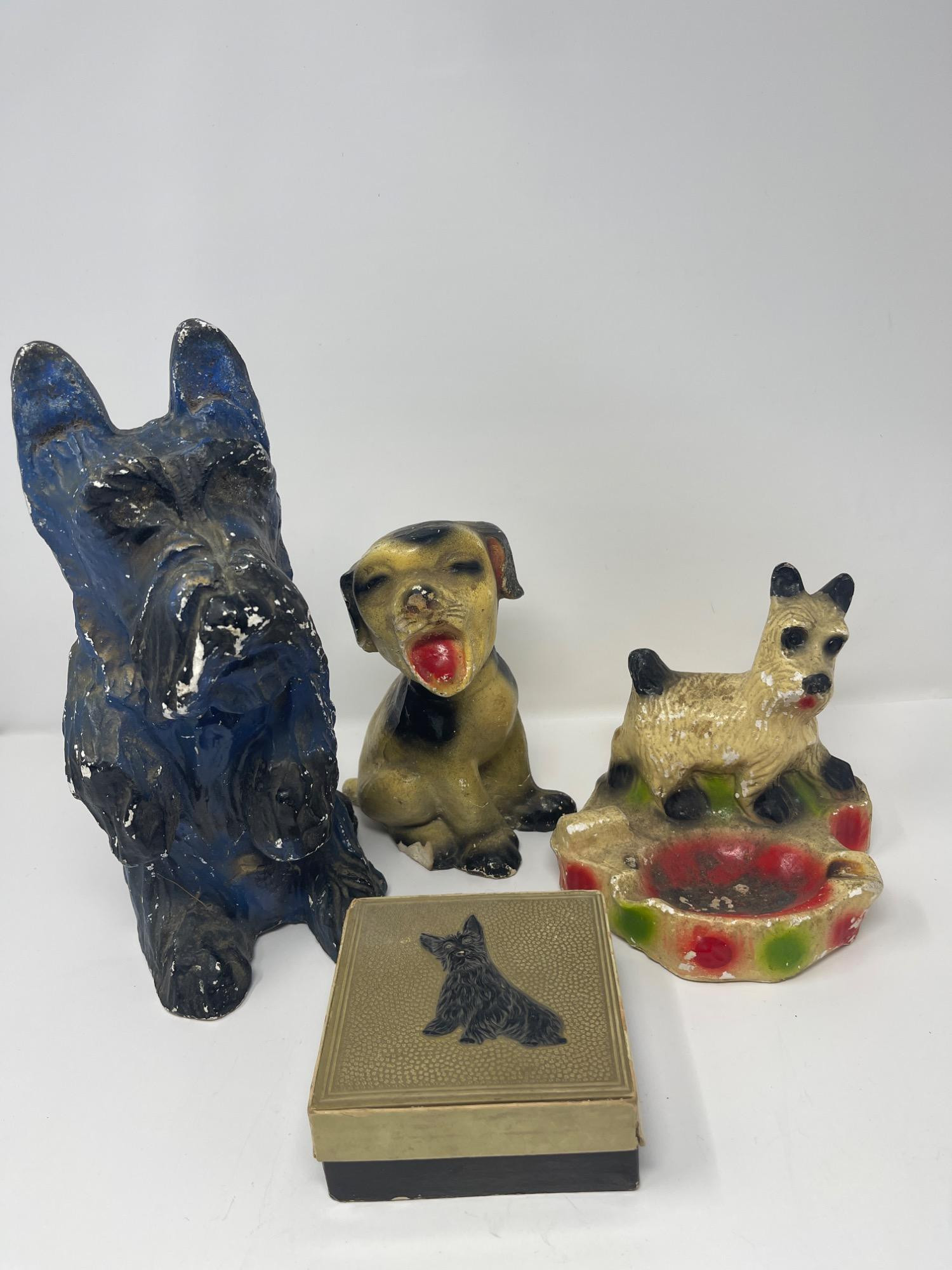 Lot # 57 - Scottie Dog Collection: Chalkware Figurines, Ashtray, & Box