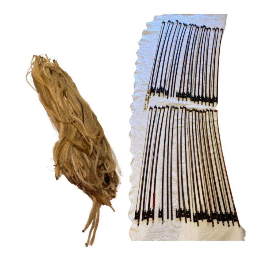 37 violin bows, including Lupot, Voirin, and German-made pieces, along with replacement horsehair. A diverse and valuable lot for musicians and collectors seeking high-quality bows for performance or restoration.