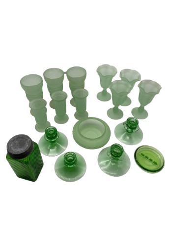 Lot # 94 - Green Glass & Satin Glass Lot: Sundae Dishes, Candleholders, & More