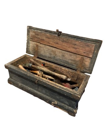 This 32" x 12.5" x 11.5" antique tool chest is packed with vintage hand tools, each carrying a story from the past. Stored in a shed for who knows how long, it's a treasure trove for tool enthusiasts and collectors alike!