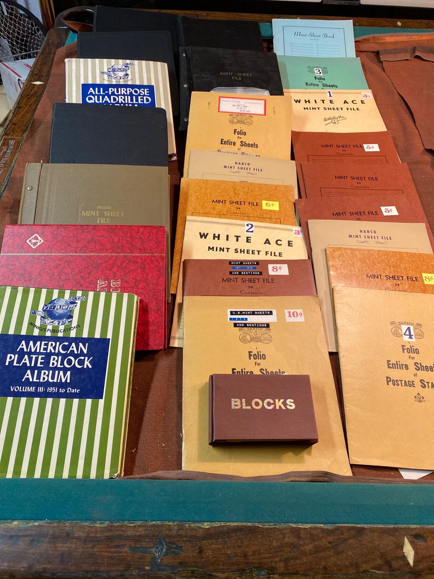 This remarkable collection includes 24 individual block albums, highlighted by an album containing 108 full sheets of stunning 3¢ and 4¢ stamps. A truly magnificent find for philatelists and collectors alike!