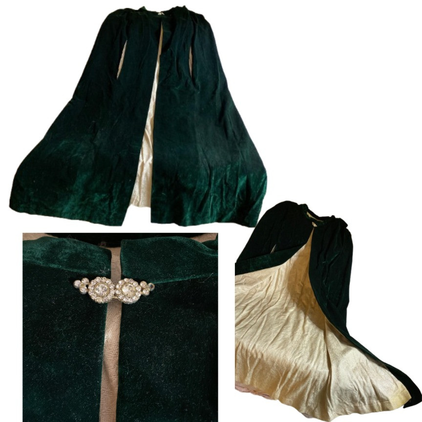 Lot # 175 - Elegant Green Velvet Cape w/ Champagne Lining & Rhinestone Closure