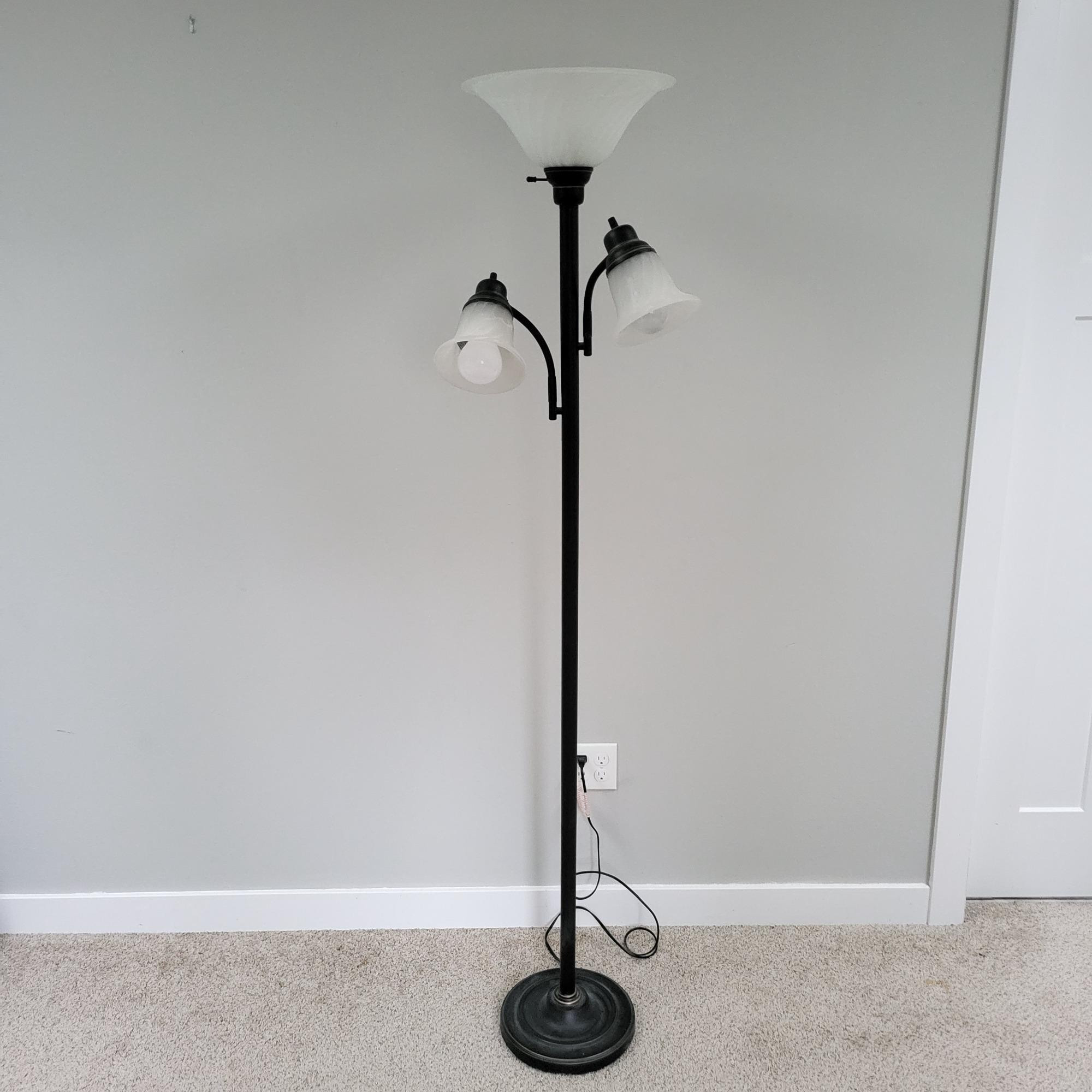 Lot # 39 - Three Way Frosted Glass Shade Torchiere Floor Lamp