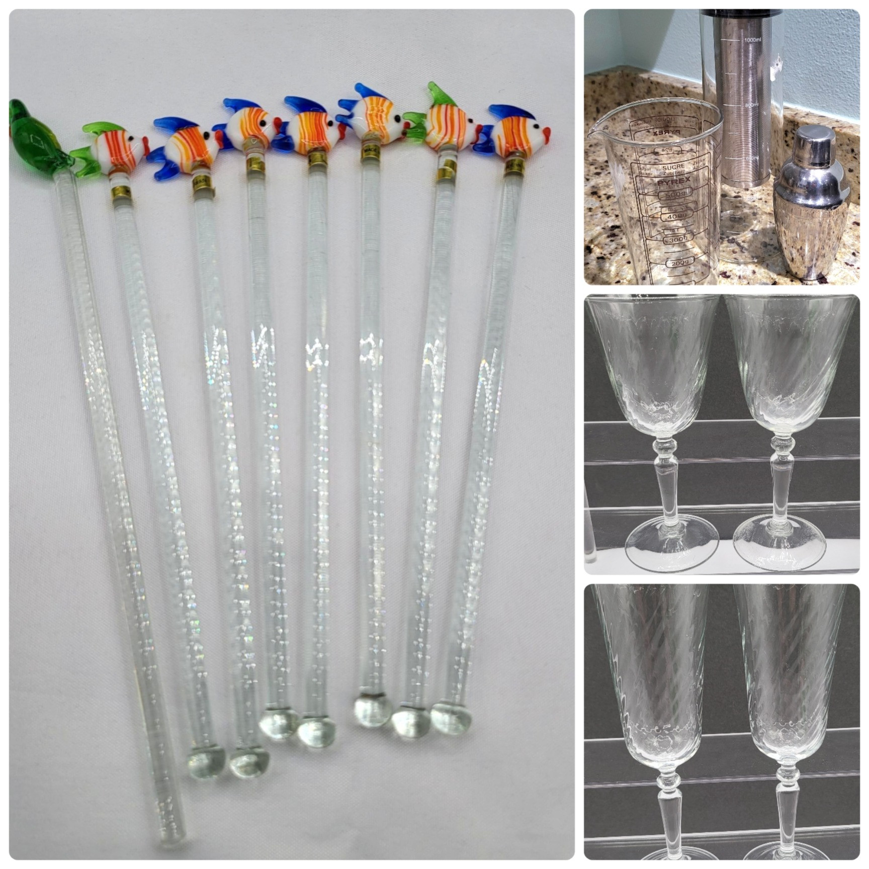 Lot # 119 - Cocktail Glasses, Glass Swizzle Sticks & More